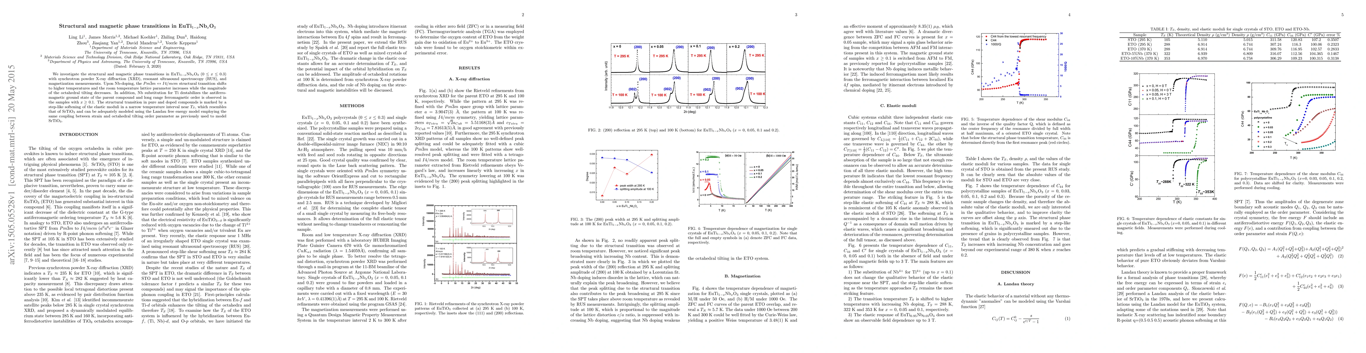The research used X-ray diffraction, resonant ultrasound spectroscopy, and magnetization measurements to study the effects of Nb doping on EuTi1-xNbxO3.