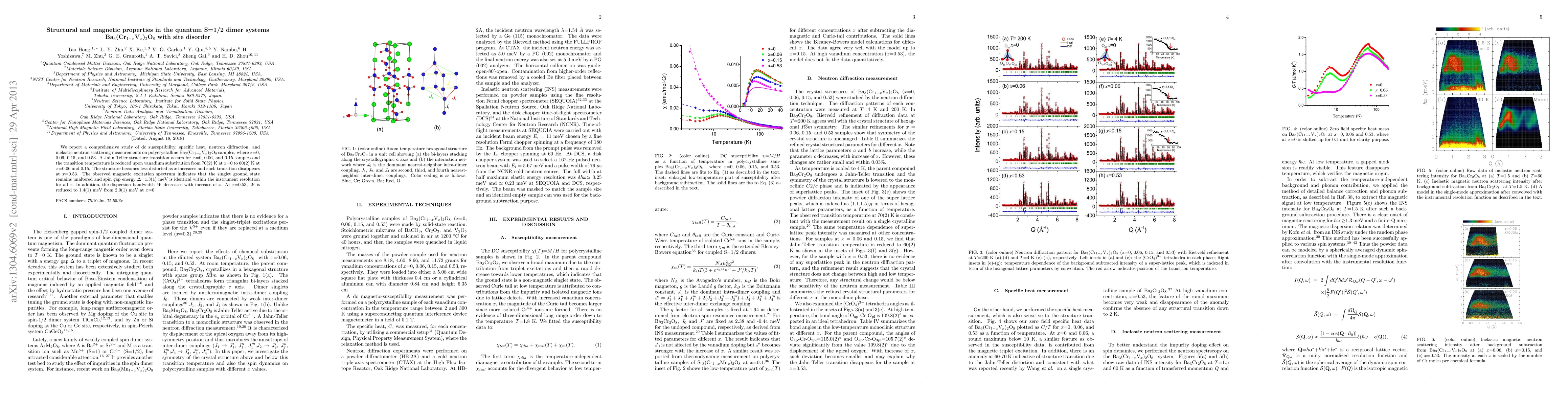 We report a comprehensive study of dc susceptibility, specific heat, neutron diffraction, and inelastic neutron scattering measurements on polycrystalline Ba3(Cr1-xVx)2O8 samples, where x=0, 0.06, 0.15, and 0.53. A Jahn-Teller structure transition occurs for x=0, 0.06, and 0.15 samples and the transition temperature is reduced upon vanadium substitution from 70(2) K at x=0 to 60(2) K at x=0.06 and 0.15. The structure becomes less distorted as x increases and such transition disappears at x=0.53. The observed magnetic excitation spectrum indicates that the singlet ground state remains unaltered and spin gap energy \Delta=1.3(1) meV is identical within the instrument resolution for all x. In addition, the dispersion bandwidth W decreases with increase of x. At x=0.53, W is reduced to 1.4(1) meV from 2.0(1) meV at x=0.