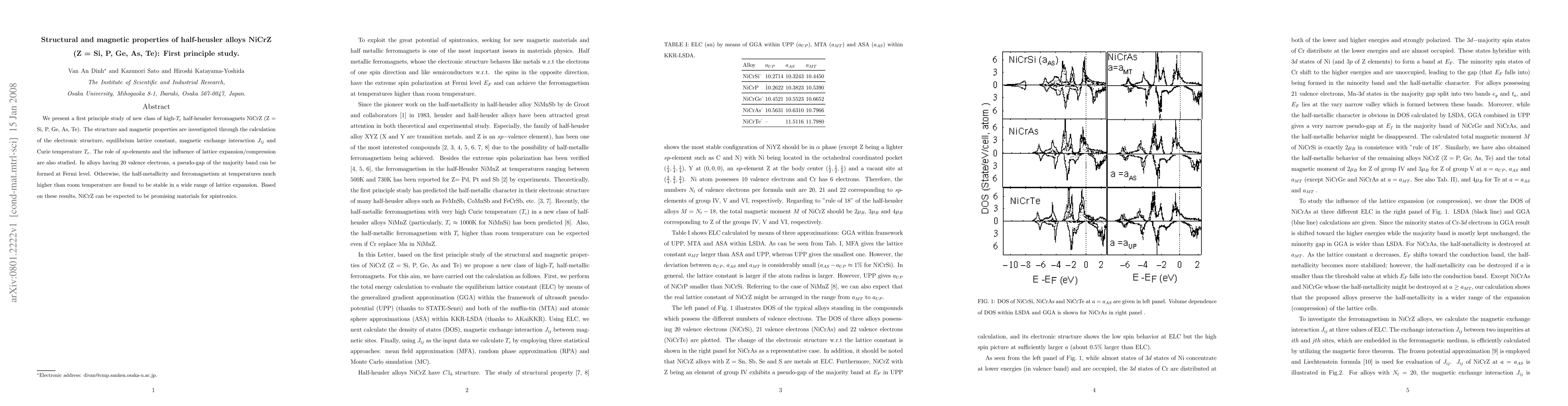 This study investigates the structural and magnetic properties of half-heusler alloys NiCrZ (Z = Si, P, Ge, As, Te) using first-principle calculations. The research reveals stable half-metallicity and ferromagnetism in these alloys, suggesting potential applications in spintronics.