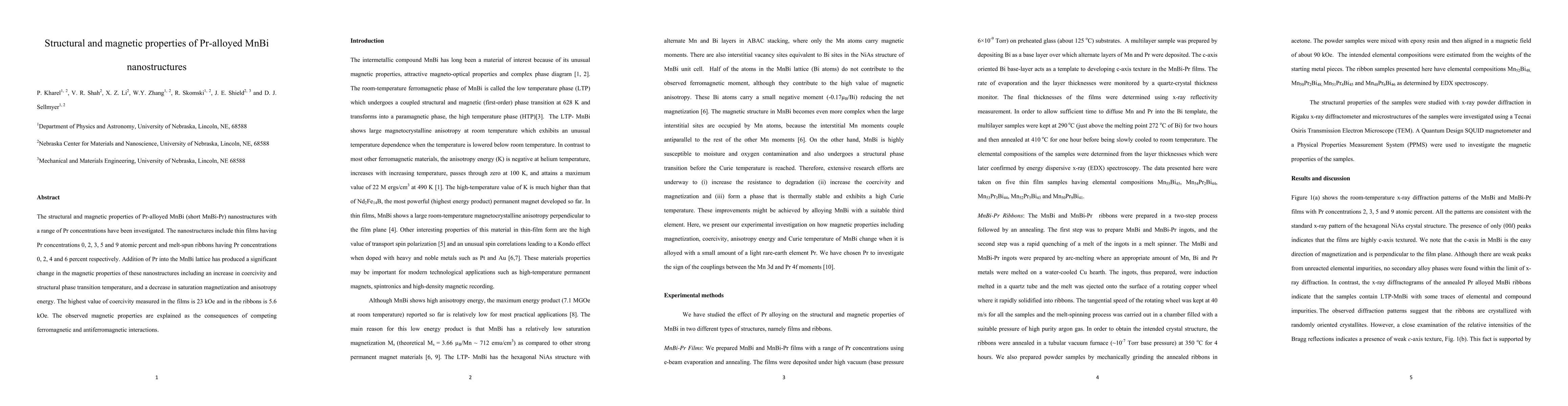 The structural and magnetic properties of Pr-alloyed MnBi (short MnBi-Pr) nanostructures with a range of Pr concentrations have been investigated. The nanostructures include thin films having Pr concentrations 0, 2, 3, 5 and 9 atomic percent and melt-spun ribbons having Pr concentrations 0, 2, 4 and 6 percent respectively. Addition of Pr into the MnBi lattice has produced a significant change in the magnetic properties of these nanostructures including an increase in coercivity and structural phase transition temperature, and a decrease in saturation magnetization and anisotropy energy. The highest value of coercivity measured in the films is 23 kOe and in the ribbons is 5.6 kOe. The observed magnetic properties are explained as the consequences of competing ferromagnetic and antiferromagnetic interactions.