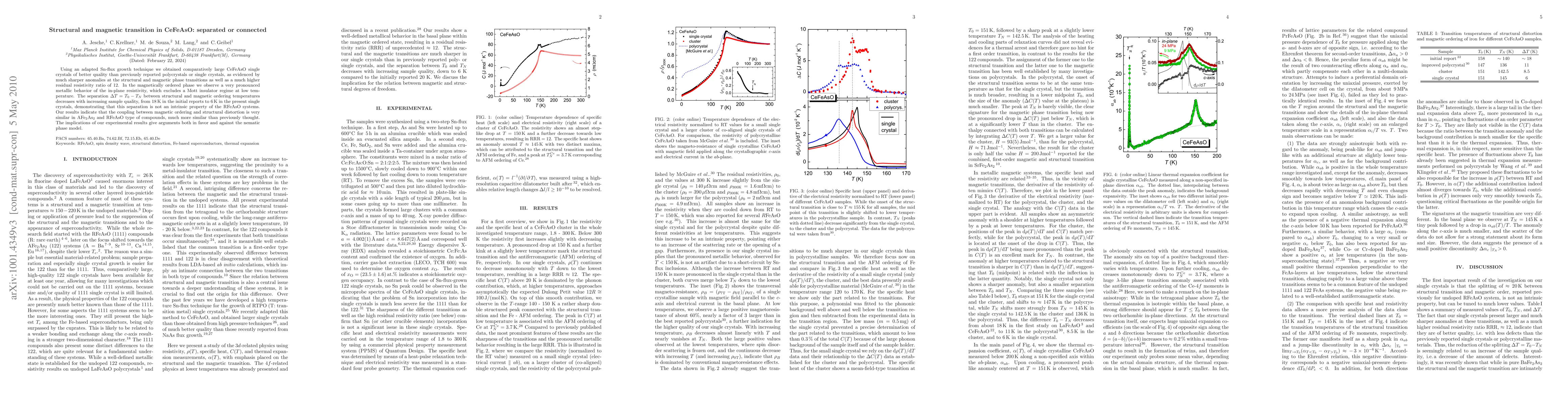Using an adapted Sn-flux growth technique we obtained comparatively large CeFeAsO single crystals of better quality than previously reported polycrystals or single crystals, as evidenced by much sharper anomalies at the structural and magnetic phase transitions as well as a much higher residual resistivity ratio of 12. In the magnetically ordered phase we observe a very pronounced metallic behavior of the in-plane resistivity, which excludes a Mott insulator regime at low temperature. The separation Delta_T = T_0 - T_N between structural and magnetic ordering temperatures decreases with increasing sample quality, from 18 K in the initial reports to 6 K in the present single crystals, demonstrating that this separation is not an intrinsic property of the RFeAsO systems. Our results indicate that the coupling between magnetic ordering and structural distortion is very similar in AFe2As2 and RFeAsO type of compounds, much more similar than previously thought. The implications of our experimental results give arguments both in favor and against the nematic phase model.