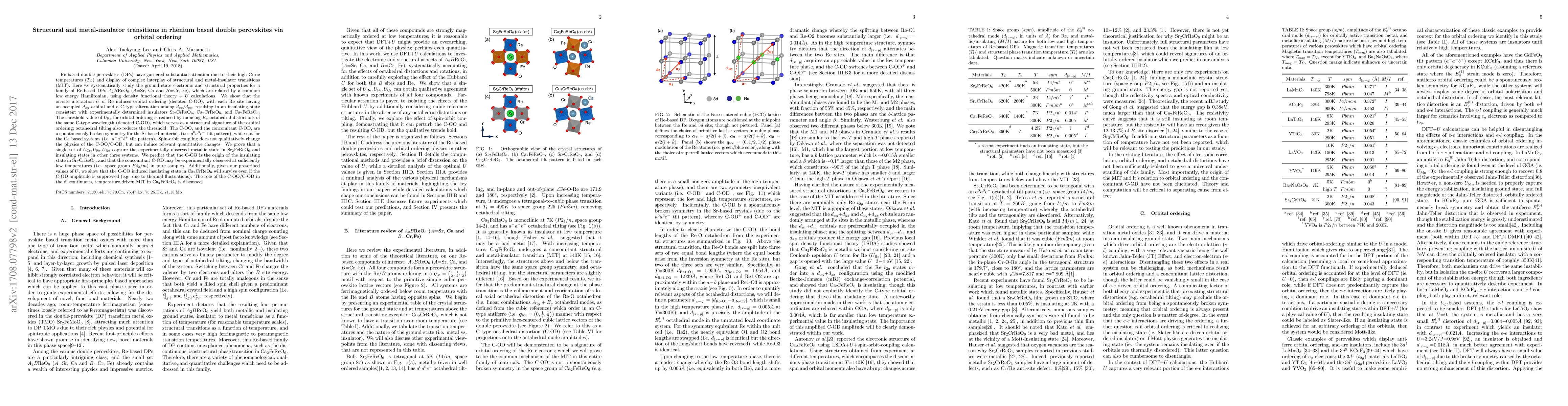 Research reveals that rhenium-based double perovskites exhibit structural and metal-insulator transitions due to orbital ordering, which is induced by the on-site interaction $U$ of Re, leading to an insulating state.