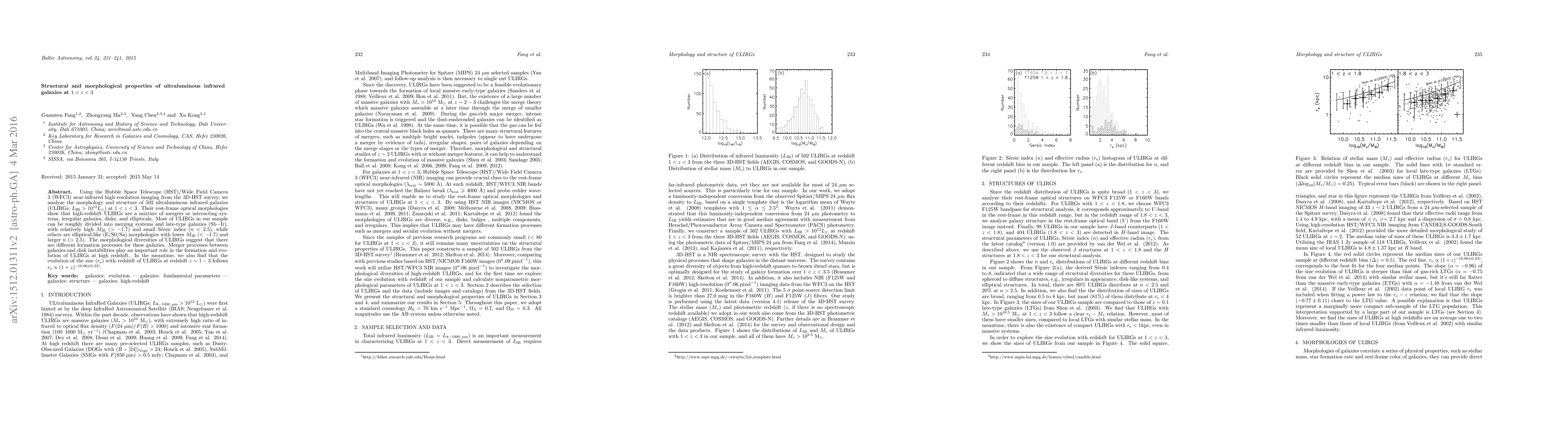 This study uses HST/WFC3 imaging to analyze the morphology and structure of 502 ultraluminous infrared galaxies (ULIRGs) at $1<z<3$, finding they are primarily merger or interacting systems with diverse morphologies. The evolution of ULIRG size with redshift follows $r_{\rm e}\propto(1+z)^{-(0.96\pm0.23)}$.