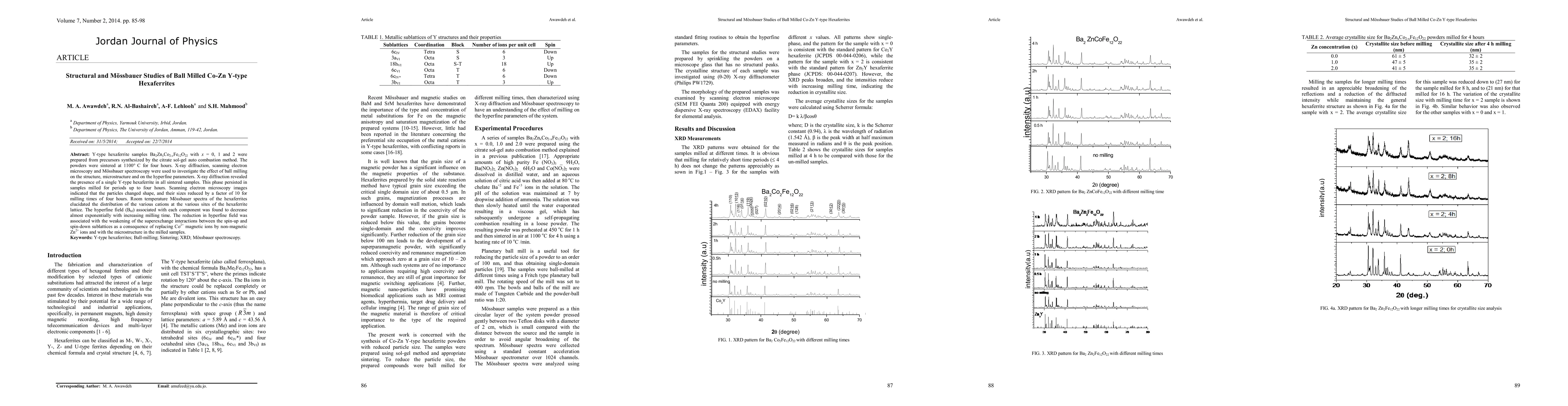 Y-type hexaferrite samples Ba2ZnxCo2-xFe12O22 with x = 0, 1 and 2 were prepared from precursors synthesized by the citrate sol-gel auto combustion method. The powders were sintered at 1100{\deg} C for four hours. X-ray diffraction, scanning electron microscopy and M\"ossbauer spectroscopy were used to investigate the effect of ball milling on the structure, microstructure and on the hyperfine parameters. X-ray diffraction revealed the presence of a single Y-type hexaferrite in all sintered samples. This phase persisted in samples milled for periods up to four hours. Scanning electron microscopy images indicated that the particles changed shape, and their sizes reduced by a factor of 10 for milling times of four hours. Room temperature M\"ossbauer spectra of the hexaferrites elucidated the distribution of the various cations at the various sites of the hexaferrite lattice. The hyperfine field (Bhf) associated with each component was found to decrease almost exponentially with increasing milling time. The reduction in hyperfine field was associated with the weakening of the superexchange interactions between the spin-up and spin-down sublattices as a consequence of replacing Co2+ magnetic ions by non-magnetic Zn2+ ions and with the microstructure in the milled samples.