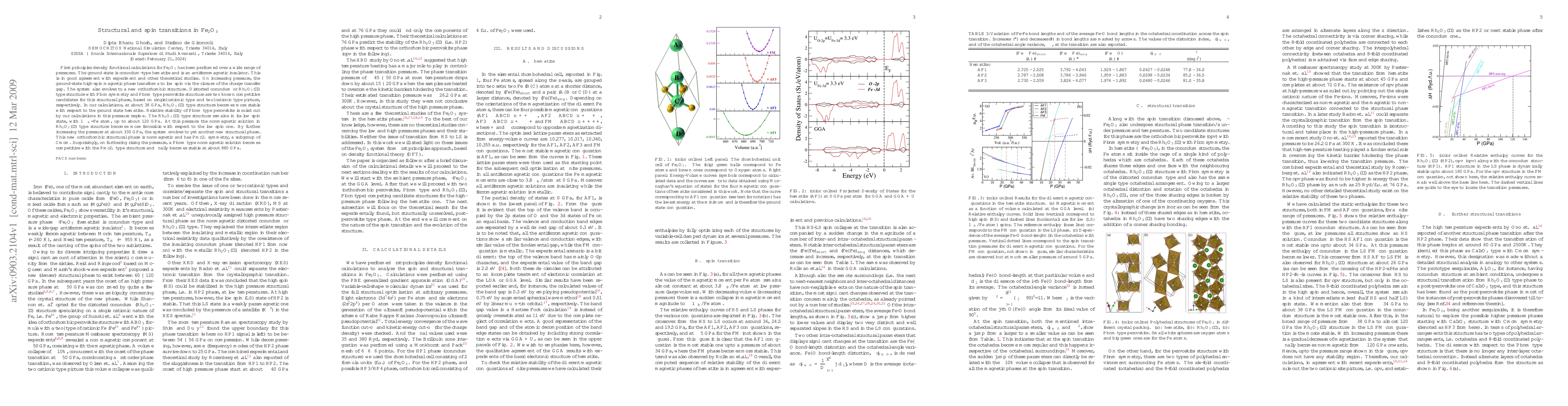 Researchers used first principles calculations to study structural transitions in Fe$_{2}$O$_{3}$ under high pressure, finding multiple phase transformations that lead to nonmagnetic states with new crystal structures.