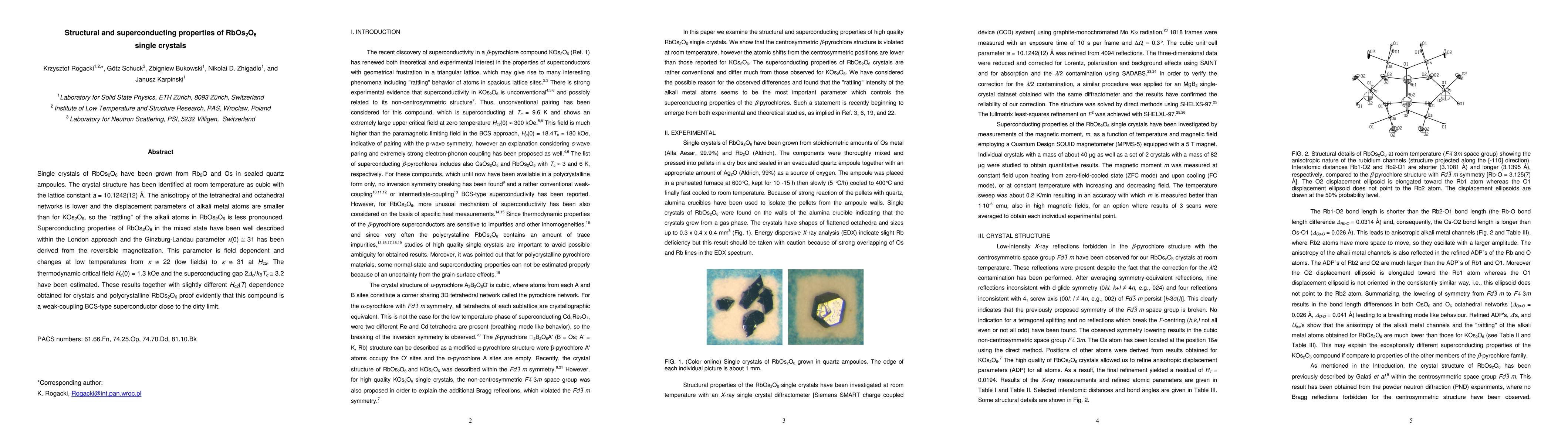 Researchers have grown single crystals of RbOs2O6, a new superconductor with properties similar to those of conventional BCS-type superconductors, exhibiting a critical temperature (Tc) of 3.2K and a thermodynamic critical field Hc(0) = 1.3kOe.