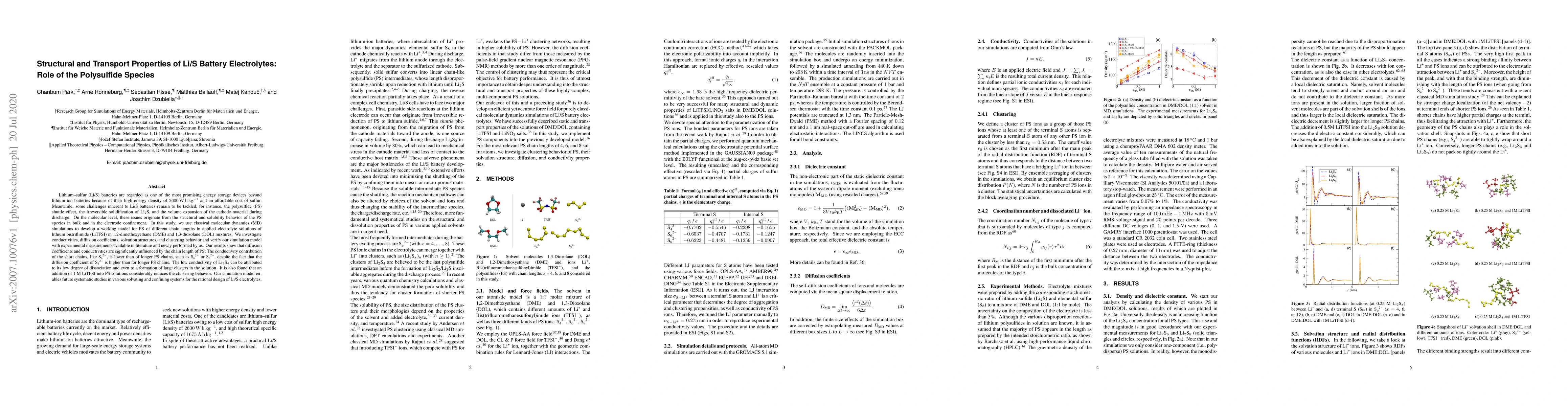 Researchers used molecular dynamics simulations to study the behavior of polysulfide species in lithium-sulfur battery electrolytes, finding that chain length affects conductivity and diffusion coefficients, with longer chains leading to higher conductivities despite lower diffusion rates.