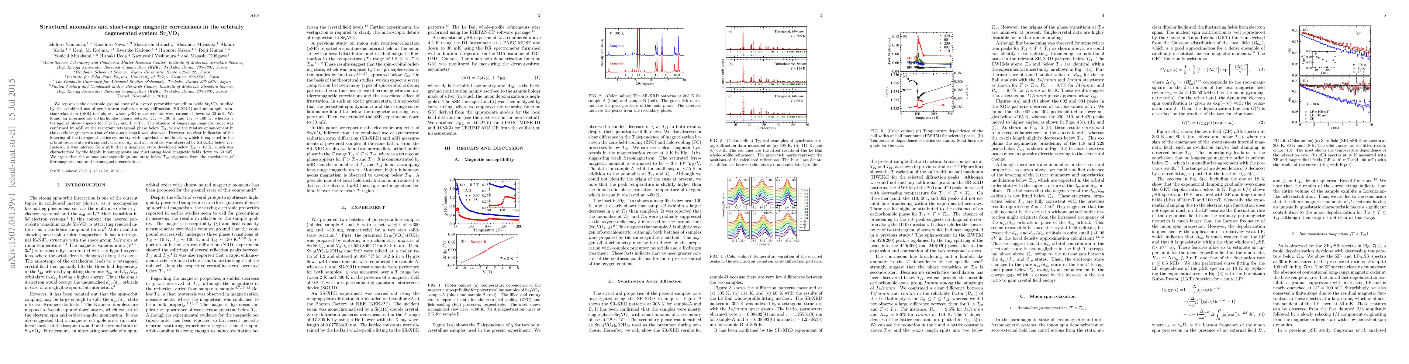 Researchers studied Sr2VO4 using x-ray diffraction and muon spin rotation/relaxation techniques to find an intermediate orthorhombic phase between 130K and 100K, with no long-range magnetic order below a certain temperature.