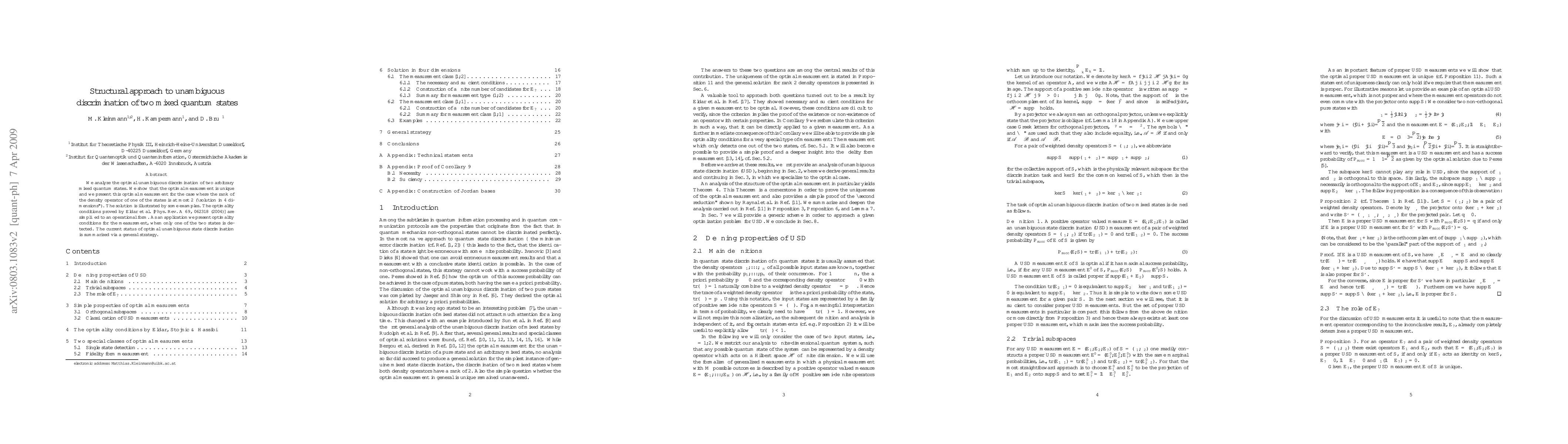 This research presents a unique method for distinguishing between two mixed quantum states, simplifying optimality conditions. It also offers conditions for measuring when only one state is present, with illustrative examples and a summary of current strategies in unambiguous state discrimination.