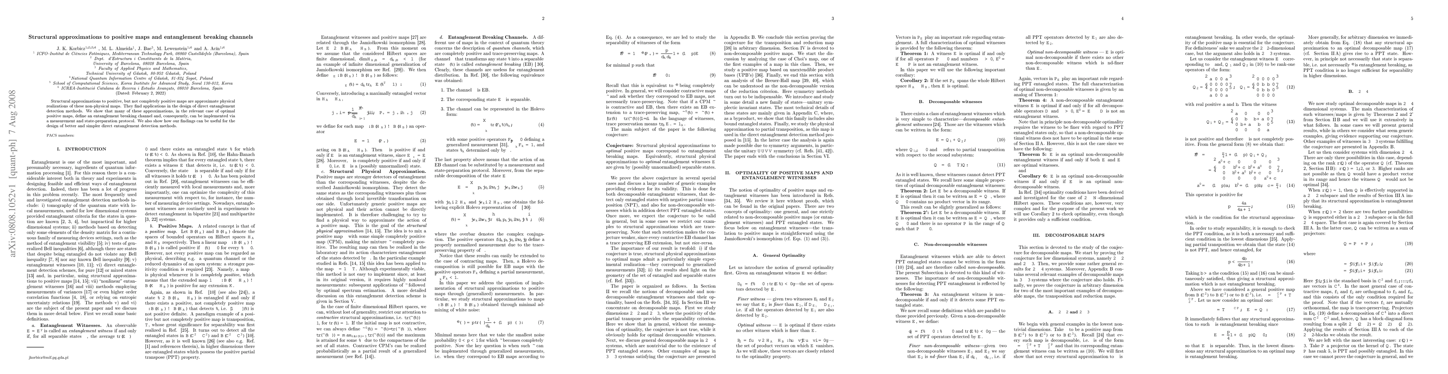 This paper explores structural approximations to positive maps that are not completely positive, demonstrating their role in designing entanglement detection methods. It reveals that these approximations, particularly optimal positive maps, define entanglement breaking channels, which can be implemented through measurement and state-preparation protocols, thus aiding in the development of more efficient and straightforward entanglement detection techniques.