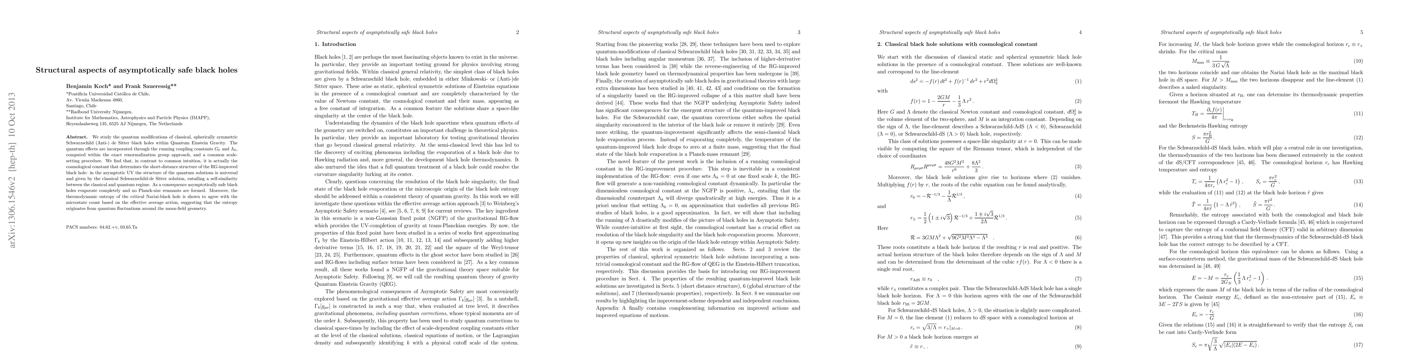 We study the quantum modifications of classical, spherically symmetric Schwarzschild (Anti-) de Sitter black holes within Quantum Einstein Gravity. The quantum effects are incorporated through the running coupling constants $G_k$ and $\Lambda_k$, computed within the exact renormalization group approach, and a common scale-setting procedure. We find that, in contrast to common intuition, it is actually the cosmological constant that determines the short-distance structure of the RG-improved black hole: in the asymptotic UV the structure of the quantum solutions is universal and given by the classical Schwarzschild-de Sitter solution, entailing a self-similarity between the classical and quantum regime. As a consequence asymptotically safe black holes evaporate completely and no Planck-size remnants are formed. Moreover, the thermodynamic entropy of the critical Nariai-black hole is shown to agree with the microstate count based on the effective average action, suggesting that the entropy originates from quantum fluctuations around the mean-field geometry.