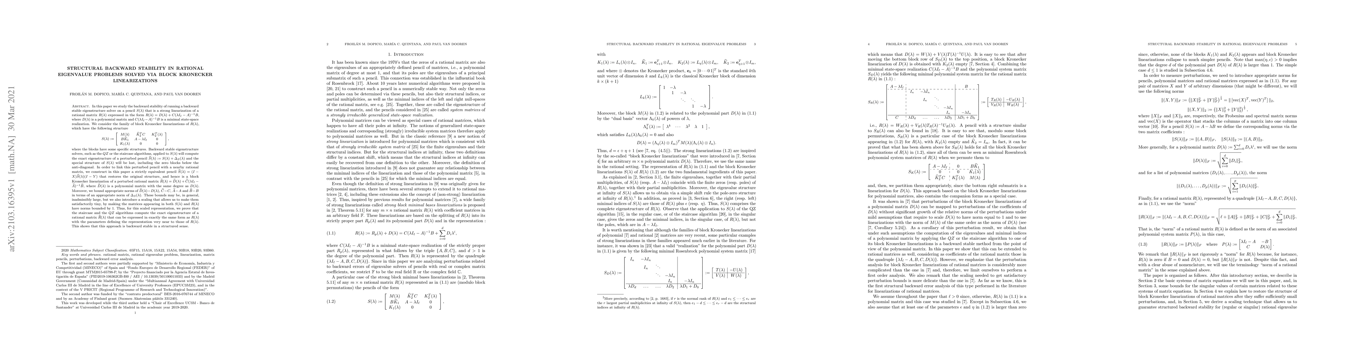 Researchers prove that a structured approach to solving rational eigenvalue problems using block Kronecker linearizations preserves backward stability, allowing for exact solutions even with perturbations.