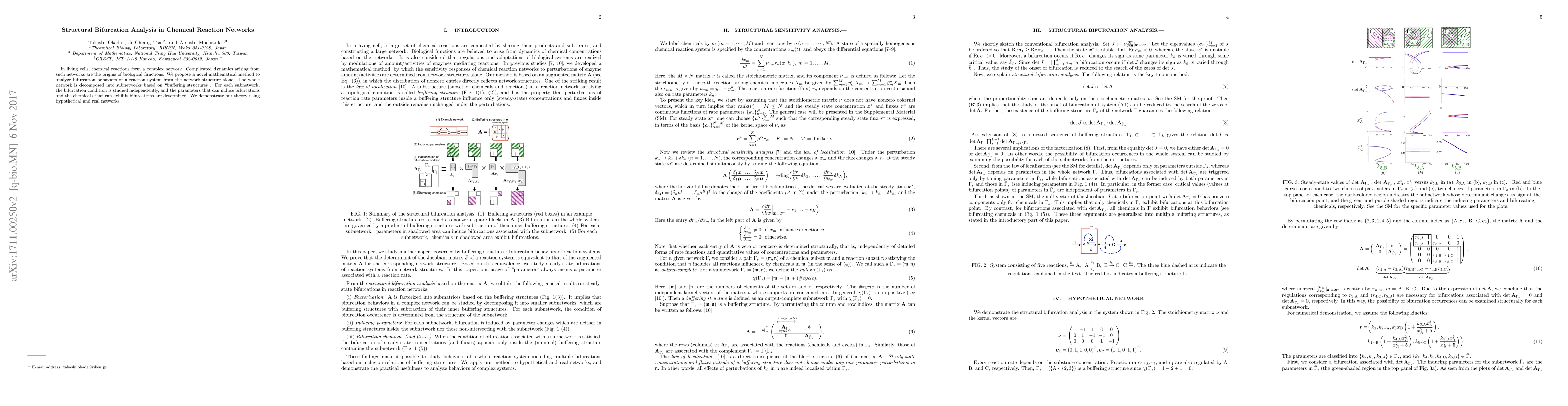 In living cells, chemical reactions form a complex network. Complicated dynamics arising from such networks are the origins of biological functions. We propose a novel mathematical method to analyze bifurcation behaviors of a reaction system from the network structure alone. The whole network is decomposed into subnetworks based on "buffering structures". For each subnetwork, the bifurcation condition is studied independently, and the parameters that can induce bifurcations and the chemicals that can exhibit bifurcations are determined. We demonstrate our theory using hypothetical and real networks.