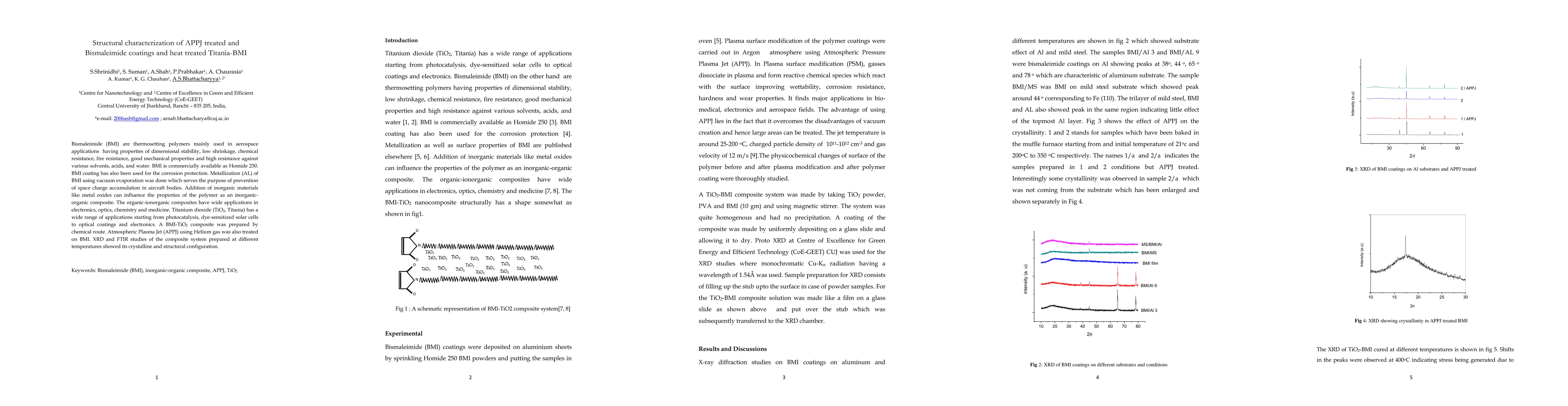 Researchers characterized structural properties of Bismaleimide coatings treated with Atmospheric Plasma Jet (APPJ) and Titanium dioxide (TiO2), showing their crystalline and thermal configurations.