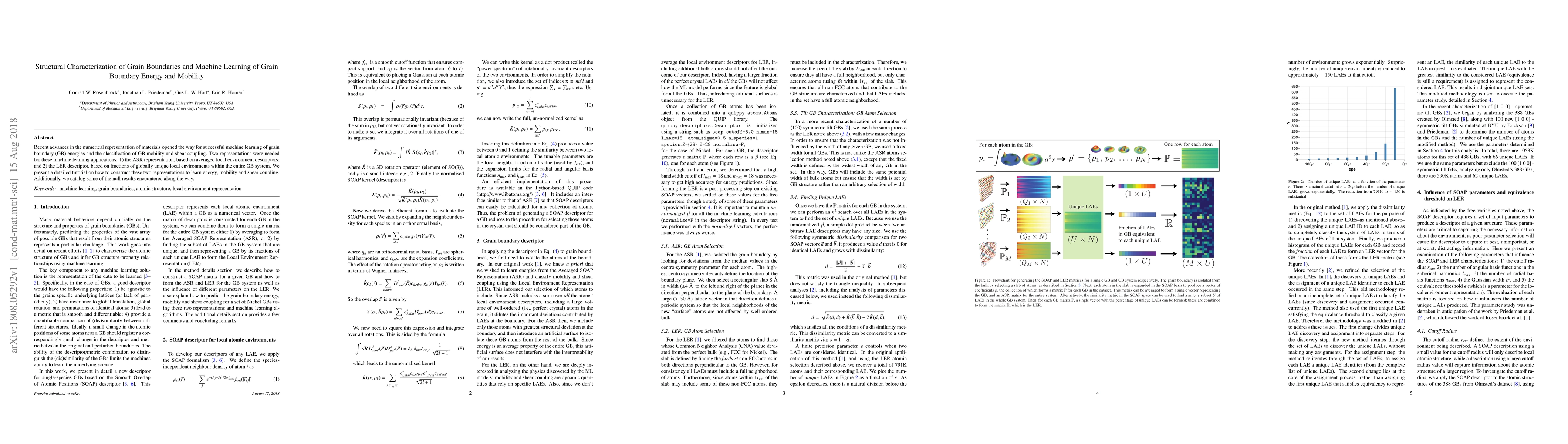 Researchers developed two machine learning representations to analyze grain boundaries in materials: ASR for energy and LER for mobility and shear coupling. These representations allow for the prediction of material properties with improved accuracy.