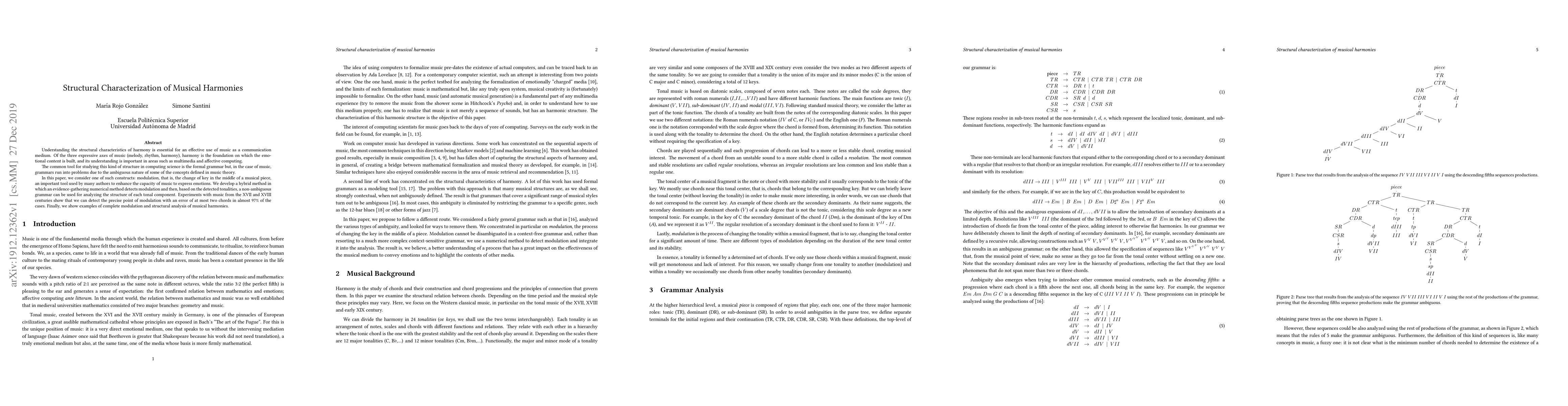 Understanding the structural characteristics of harmony is essential for an effective use of music as a communication medium. Of the three expressive axes of music (melody, rhythm, harmony), harmony is the foundation on which the emotional content is built, and its understanding is important in areas such as multimedia and affective computing. The common tool for studying this kind of structure in computing science is the formal grammar but, in the case of music, grammars run into problems due to the ambiguous nature of some of the concepts defined in music theory. In this paper, we consider one of such constructs: modulation, that is, the change of key in the middle of a musical piece, an important tool used by many authors to enhance the capacity of music to express emotions. We develop a hybrid method in which an evidence-gathering numerical method detects modulation and then, based on the detected tonalities, a non-ambiguous grammar can be used for analyzing the structure of each tonal component. Experiments with music from the XVII and XVIII centuries show that we can detect the precise point of modulation with an error of at most two chords in almost 97% of the cases. Finally, we show examples of complete modulation and structural analysis of musical harmonies.