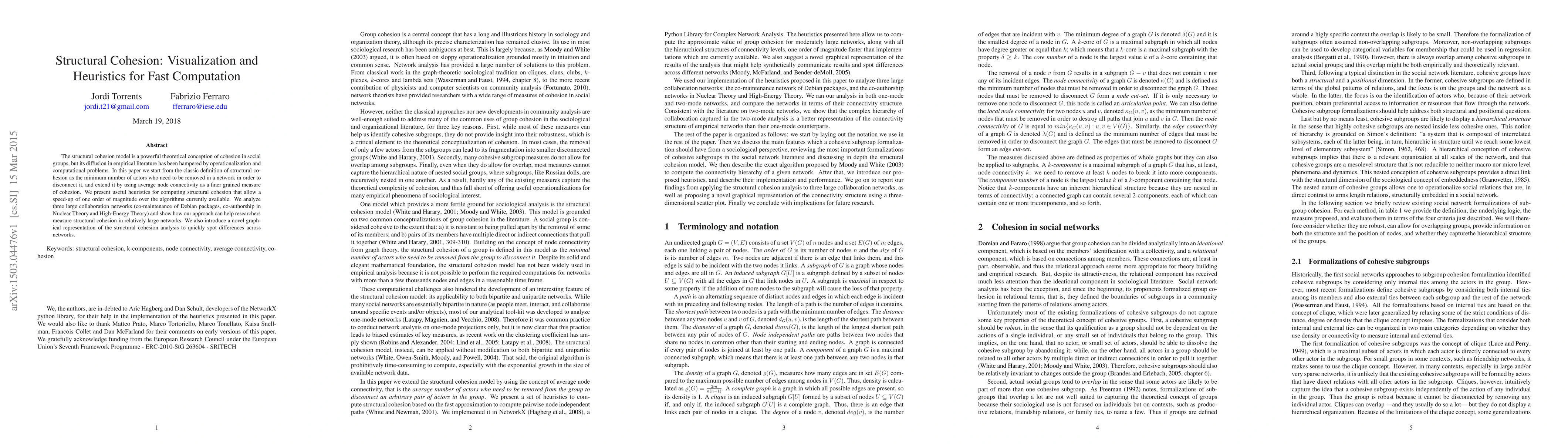 This paper proposes enhanced heuristics for computing structural cohesion in social networks, offering a significant speed-up over existing algorithms. It introduces a finer measure using average node connectivity and applies the method to large collaboration networks, demonstrating its effectiveness and providing a new visualization tool for comparative analysis.