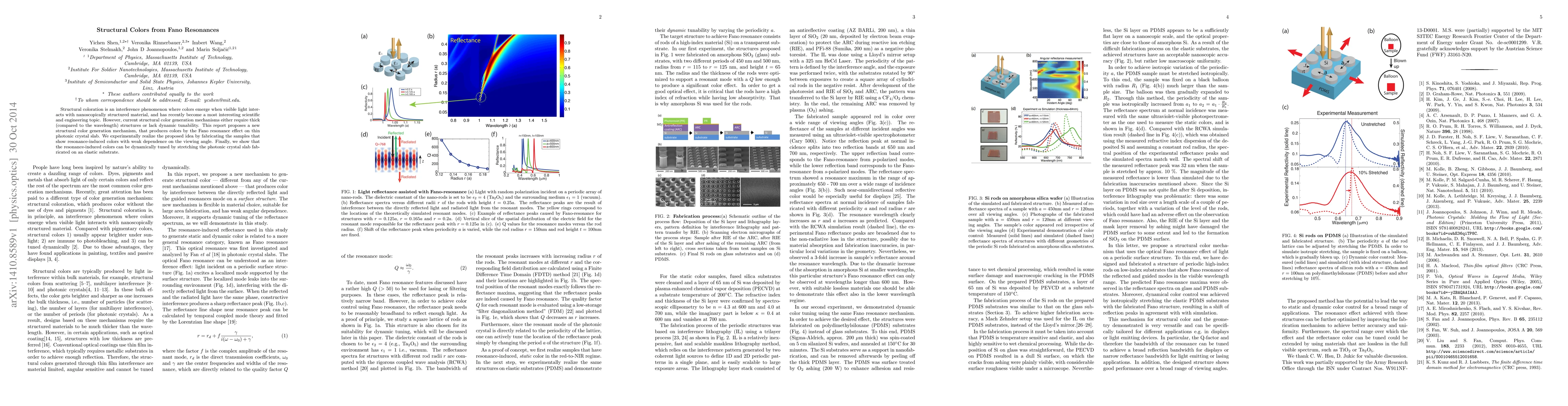This paper proposes a new mechanism for generating structural colors via Fano resonances in thin photonic crystal slabs, achieving colors with minimal angle dependence and dynamic tunability through stretching on an elastic substrate. Experimental results demonstrate the feasibility of this approach.