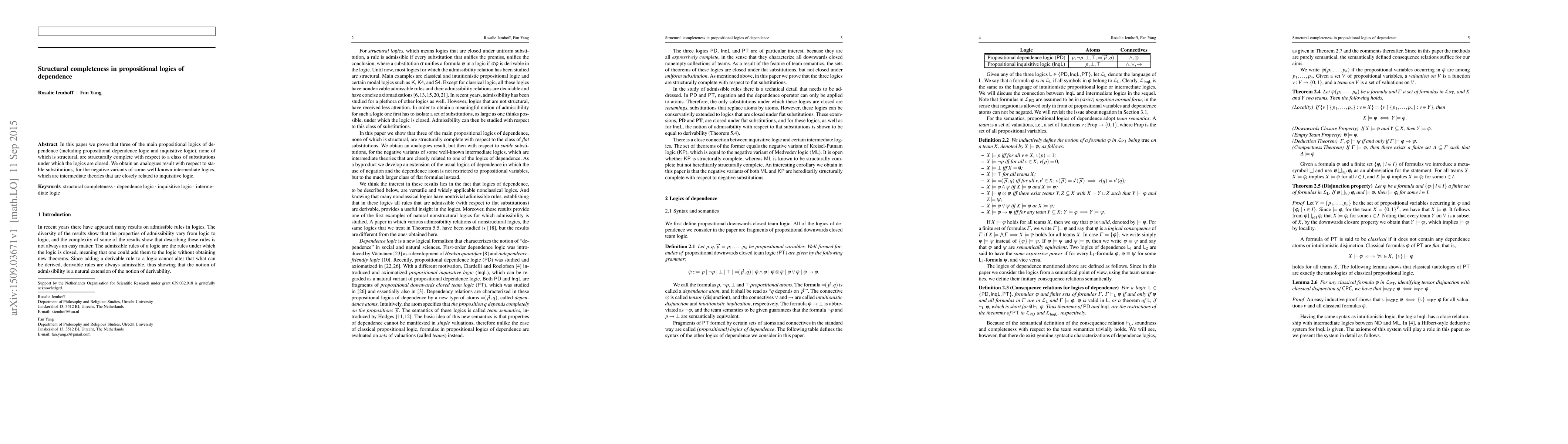 This paper demonstrates the structural completeness of three main propositional logics of dependence, including propositional dependence logic and inquisitive logic, with respect to specific substitution classes. Additionally, it extends this result to negative variants of well-known intermediate logics under stable substitutions.