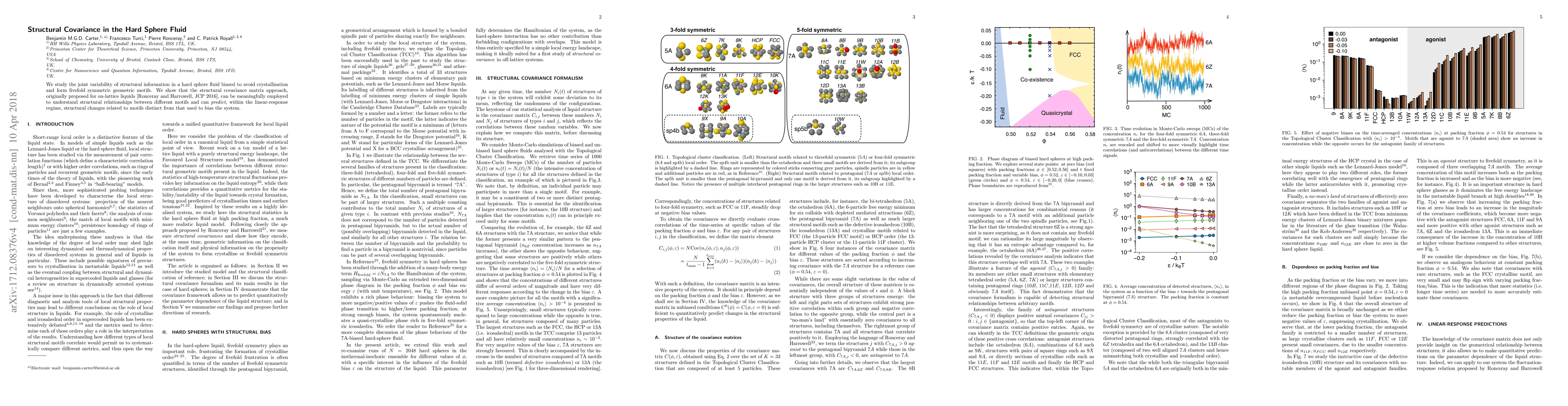 We study the joint variability of structural information in a hard sphere fluid biased to avoid crystallisation and form fivefold symmetric geometric motifs. We show that the structural covariance matrix approach, originally proposed for on-lattice liquids [Ronceray and Harrowell, JCP 2016], can be meaningfully employed to understand structural relationships between different motifs and can predict, within the linear-response regime, structural changes related to motifs distinct from that used to bias the system.