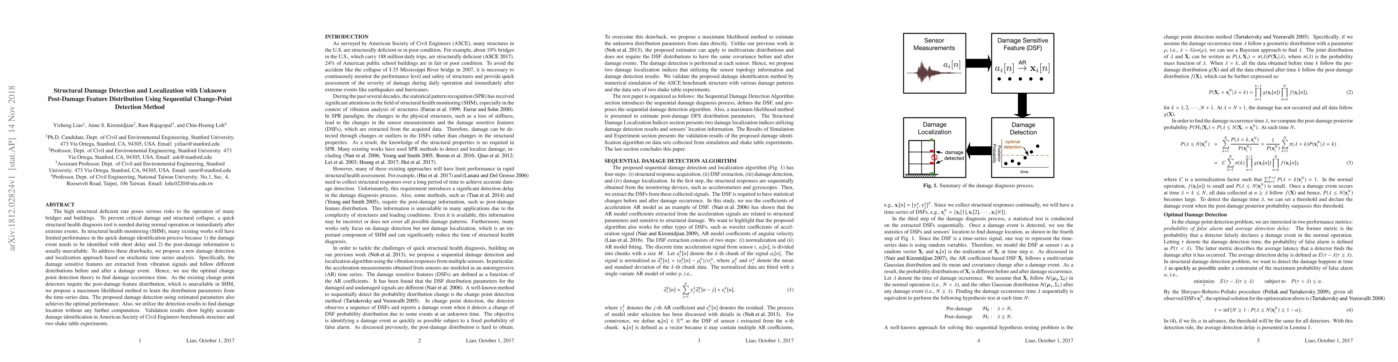This paper proposes a novel method for detecting and localizing structural damage in bridges and buildings using sequential change-point detection and maximum likelihood estimation. The approach effectively identifies damage occurrence times and locations without requiring post-damage feature distributions, validated through benchmark structures and shake table experiments.