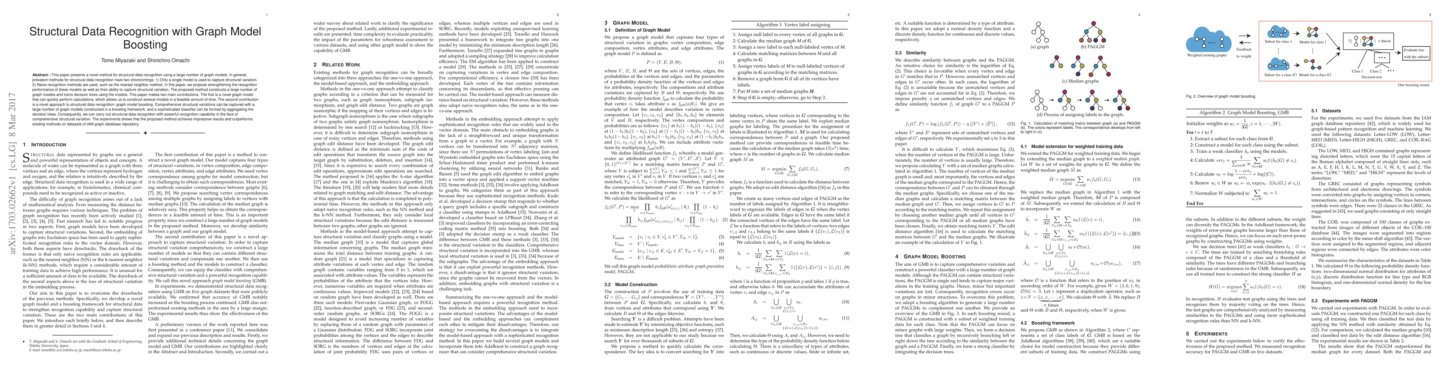 A new method for recognizing structural data using a large number of graph models outperforms existing methods with impressive results, capturing comprehensive structural variations through boosting.