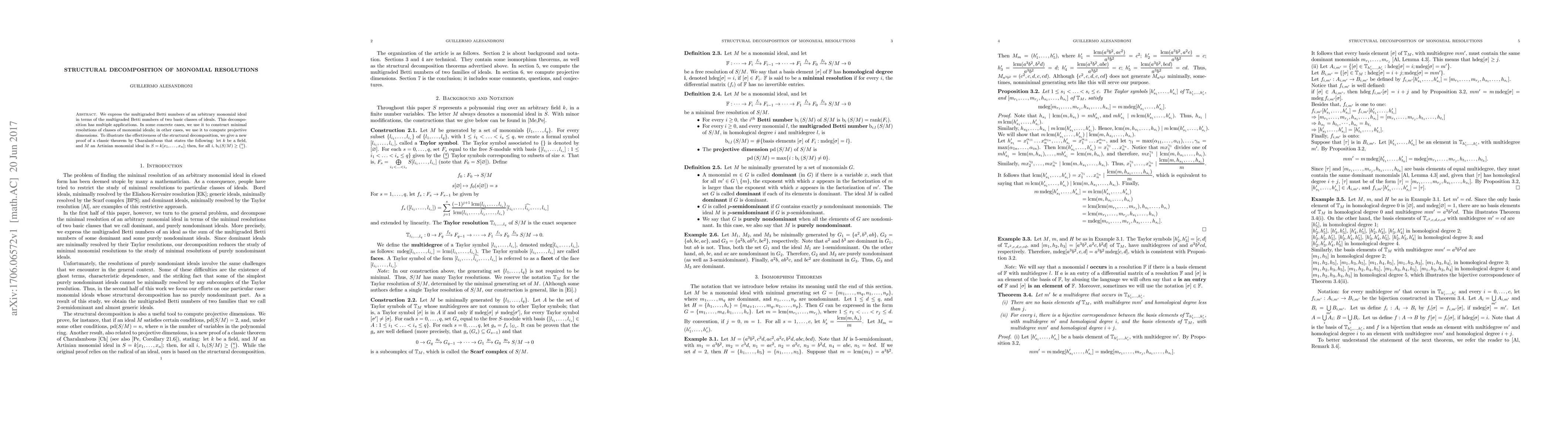 We express the multigraded Betti numbers of an arbitrary monomial ideal in terms of the multigraded Betti numbers of two basic classes of ideals. This decompo- sition has multiple applications. In some concrete cases, we use it to construct minimal resolutions of classes of monomial ideals; in other cases, we use it to compute projective dimensions. To illustrate the effectiveness of the structural decomposition, we give a new proof of a classic theorem by Charalambous.