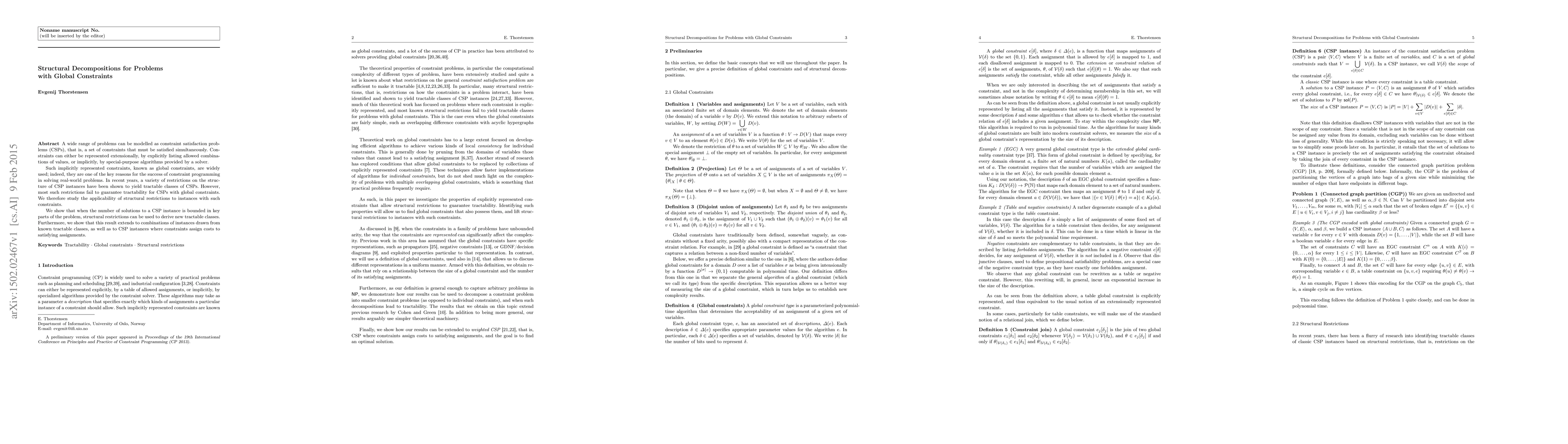 This paper explores how structural decompositions can create tractable classes for constraint satisfaction problems (CSPs) that include global constraints. It demonstrates that bounding the number of solutions in key problem areas allows for the derivation of new tractable classes, extending this approach to combinations of known tractable instances and cost-assigning CSPs.