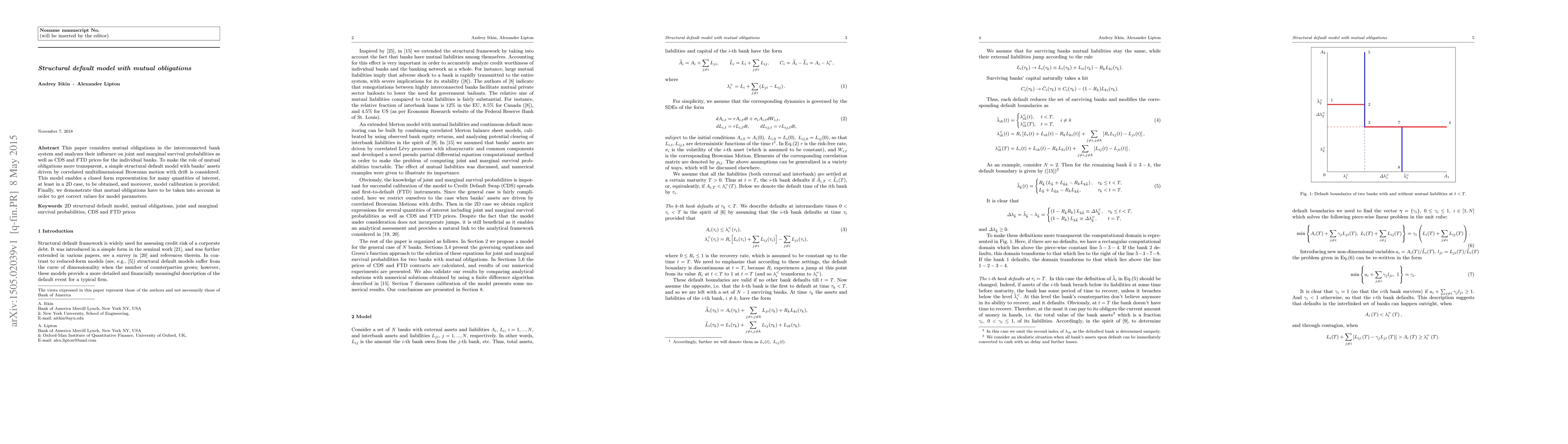 This paper develops a structural default model to analyze mutual obligations in an interconnected bank system, showing how these obligations affect survival probabilities, CDS, and FTD prices. The model uses correlated multidimensional Brownian motion and provides closed-form solutions for key metrics, emphasizing the importance of mutual obligations in parameter calibration.