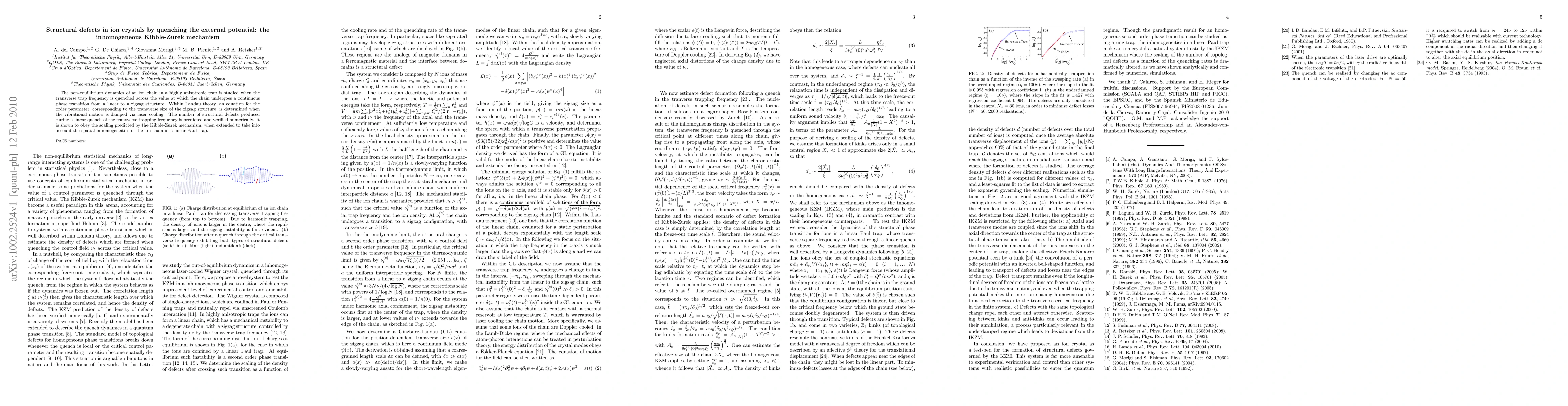 This paper investigates the structural defects in ion crystals formed during a quench of the transverse trap frequency, predicting the number of defects via the extended Kibble-Zurek mechanism. Numerical verification confirms the scaling behavior of defect production due to phase transition from linear to zigzag structure in an ion chain.