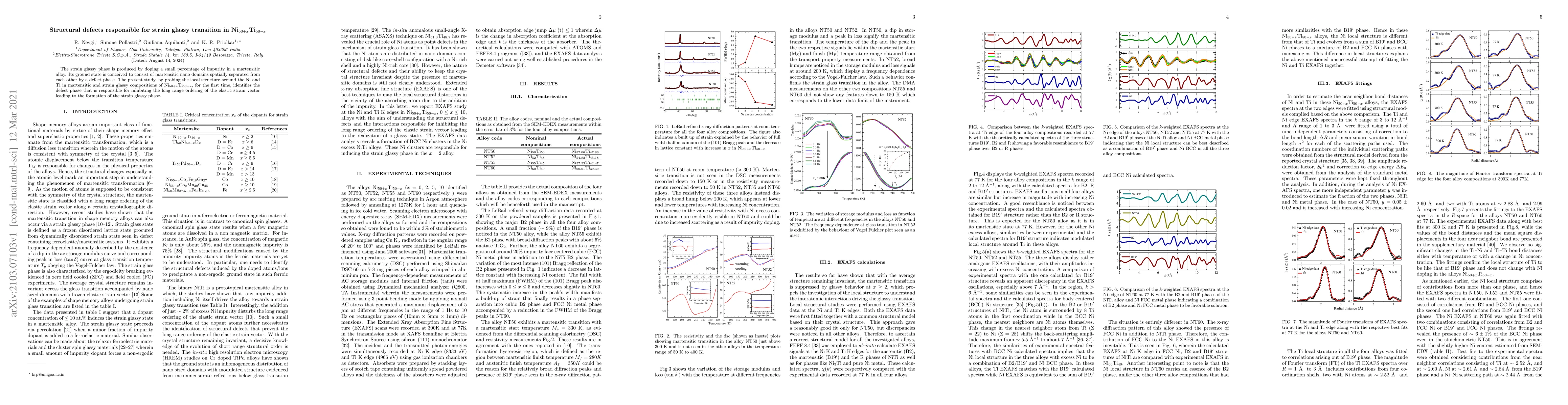 The strain glassy phase is produced by doping a small percentage of impurity in a martensitic alloy. Its ground state is conceived to consist of martensitic nano domains spatially separated from each other by a defect phase. The present study, by probing the local structure around the Ni and Ti in martensitic and strain glassy compositions of Ni$_{50+x}$Ti$_{50-x}$, for the first time, identifies the defect phase that is responsible for inhibiting the long range ordering of the elastic strain vector leading to the formation of the strain glassy phase.