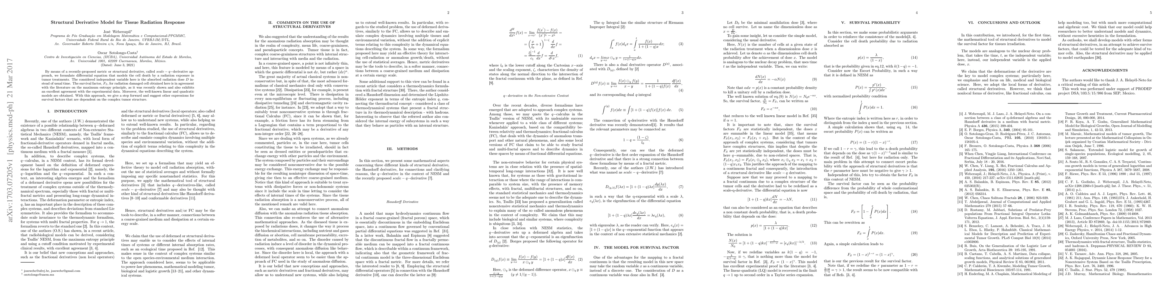 By means of a recently-proposed metric or structural derivative, called scale-q-derivative approach, we formulate differential equation that models the cell death by a radiation exposure in tumor treatments. The considered independent variable here is the absorbed radiation dose D instead of usual time. The survival factor, Fs, for radiation damaged cell obtained here is in agreement with the literature on the maximum entropy principle, as it was recently shown and also exhibits an excellent agreement with the experimental data. Moreover, the well-known linear and quadratic models are obtained. With this approach, we give a step forward and suggest other expressions for survival factors that are dependent on the complex tumor structure.
