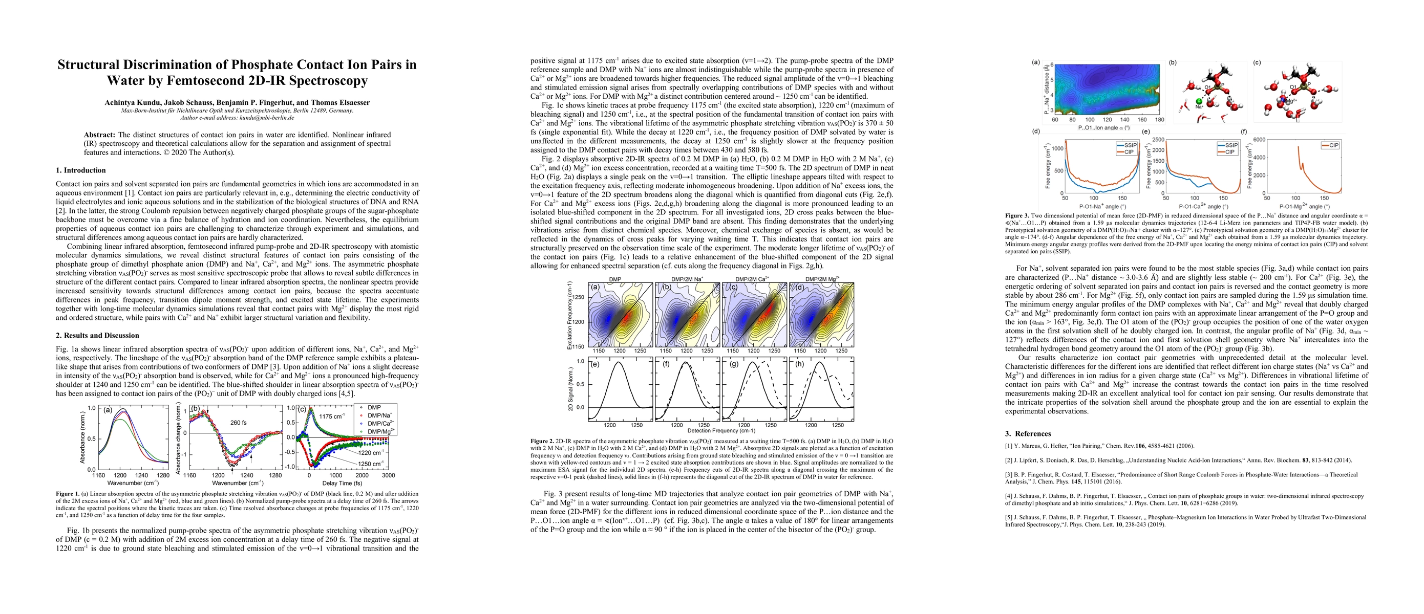 This research uses femtosecond 2D-IR spectroscopy and theoretical calculations to reveal distinct structures of contact ion pairs in water, separating and assigning spectral features and interactions.