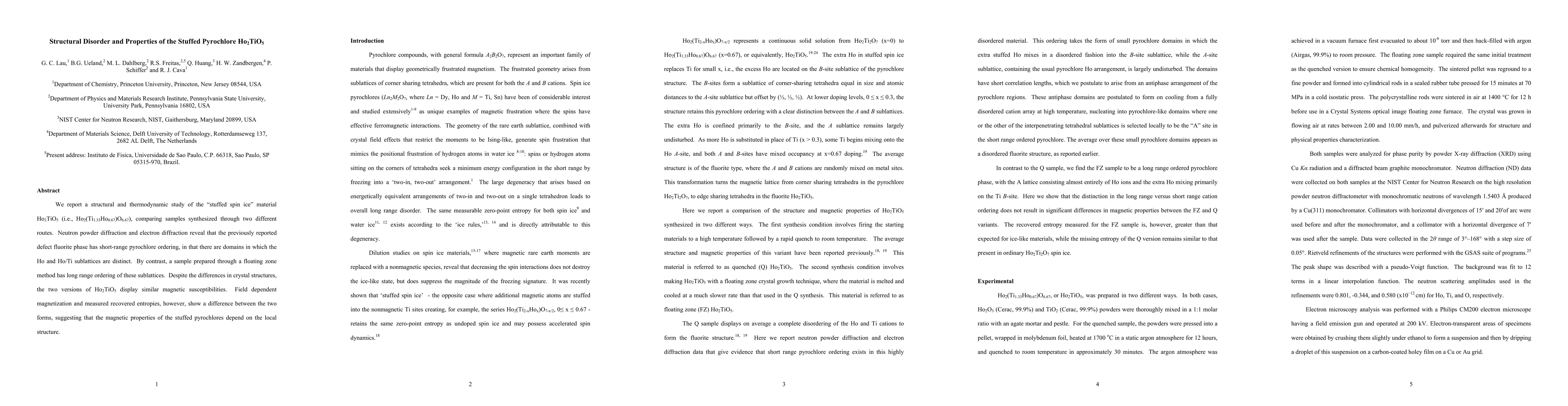 Researchers studied Ho2TiO5, a material with 'stuffed spin ice' properties, finding that its magnetic behavior depends on local structure, with two forms displaying similar but distinct properties.