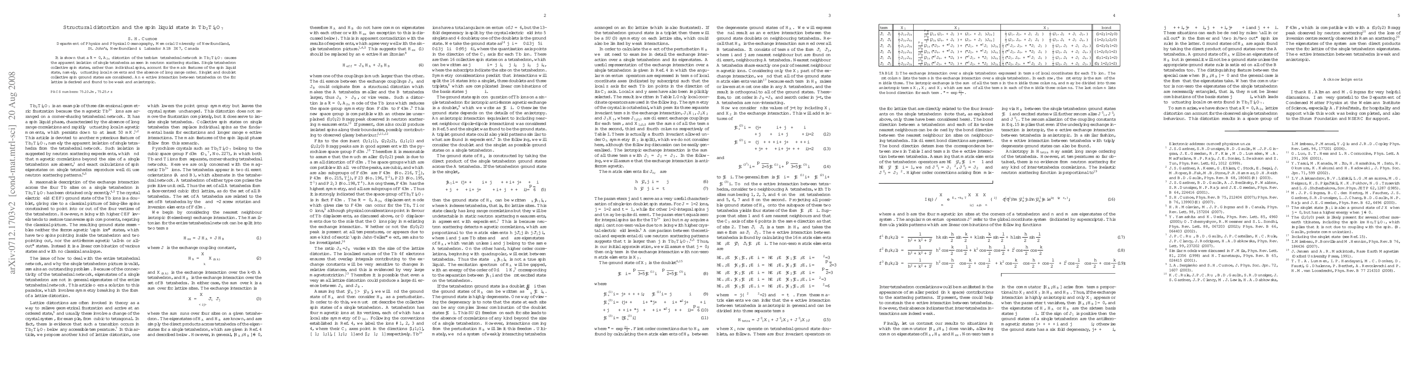 This paper demonstrates that a k=0, A_{2u} structural distortion in Tb2Ti2O7 leads to isolated tetrahedral networks, which are responsible for the observed spin liquid state characterized by fluctuating local moments and lack of long-range order. The study considers single tetrahedron collective spin states as the primary contributors to this behavior.