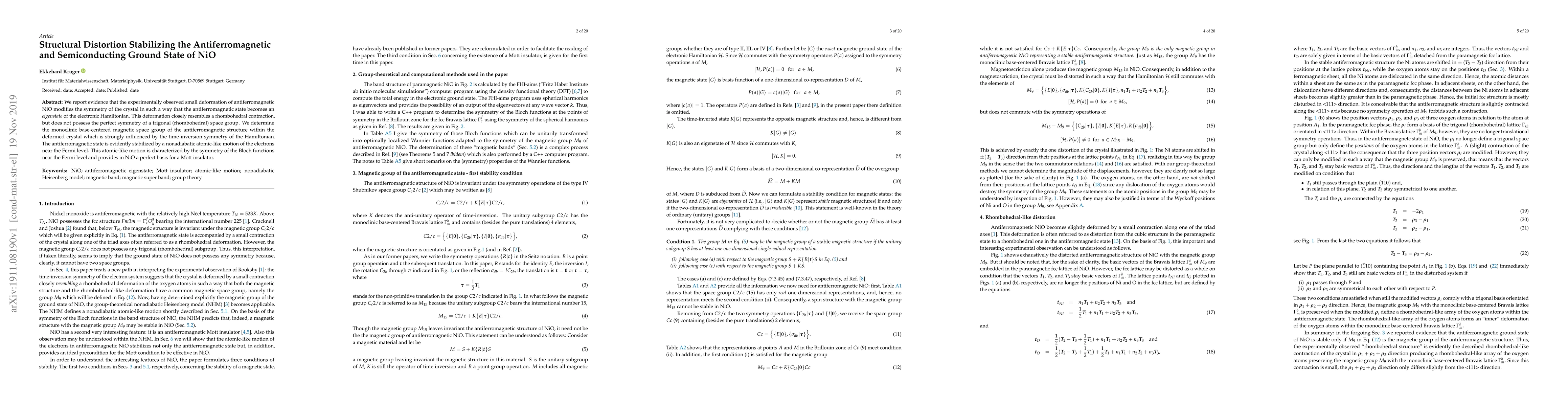 This paper demonstrates that a small deformation in the crystal structure of NiO stabilizes its antiferromagnetic and semiconducting ground state, achieved through a nonadiabatic atomic-like motion of electrons near the Fermi level, establishing a monoclinic base-centered magnetic space group.