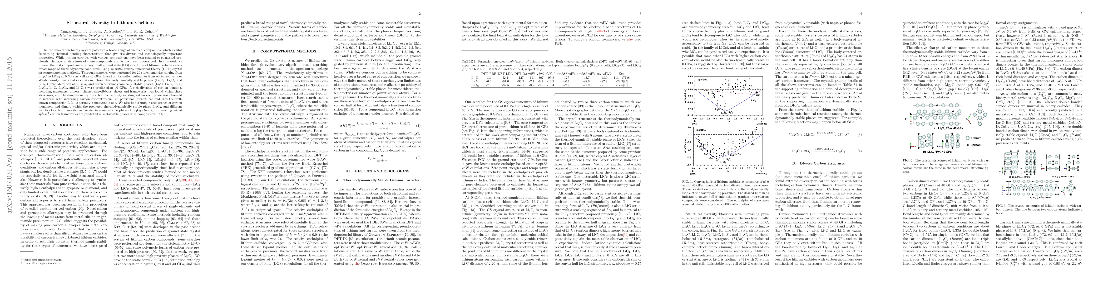 The lithium-carbon binary system possesses a broad range of chemical compounds, which exhibit fascinating chemical bonding characteristics that give rise diverse and technologically important properties. While lithium carbides with various compositions have been studied or suggested previously, the crystal structures of these compounds are far from well understood. In this work we present the first comprehensive survey of all ground state (GS) structures of lithium carbides over a broad range of thermodynamic conditions, using \textit{ab initio} density functional theory (DFT) crystal structure searching methods. Thorough searches were performed for 29 stoichiometries ranging from Li$_{12}$C to LiC$_{12}$ at 0 GPa as well as 40 GPa. Based on formation enthalpies from optimized van der Waals density functional calculations, three thermodynamically stable phases (Li$_4$C$_3$, Li$_2$C$_2$ and LiC$_{12}$) were identified at 0 GPa, and seven thermodynamically stable phases (Li$_8$C, Li$_6$C, Li$_4$C, Li$_8$C$_3$, Li$_2$C, Li$_3$C$_4$, and Li$_2$C$_3$) were predicted at 40 GPa. A rich diversity of carbon bonding, including monomers, dimers, trimers, nanoribbons, sheets and frameworks, was found within these structures, and the dimensionality of carbon connectivity existing within each phase was observed to increase with increasing carbon concentration. Of particular interest, we find that the well-known composition LiC$_6$ is actually a metastable one. We also find a unique coexistence of carbon monomers and dimers within the predicted thermodynamically stable phase Li$_8$C$_3$, and different widths of carbon nanoribbons coexist in a metastable phase of Li$_2$C$_2$ (\textit{Imm}2). Interesting mixed \textit{sp}$^2$-\textit{sp}$^3$ carbon frameworks are predicted in metastable phases with composition LiC$_6$.