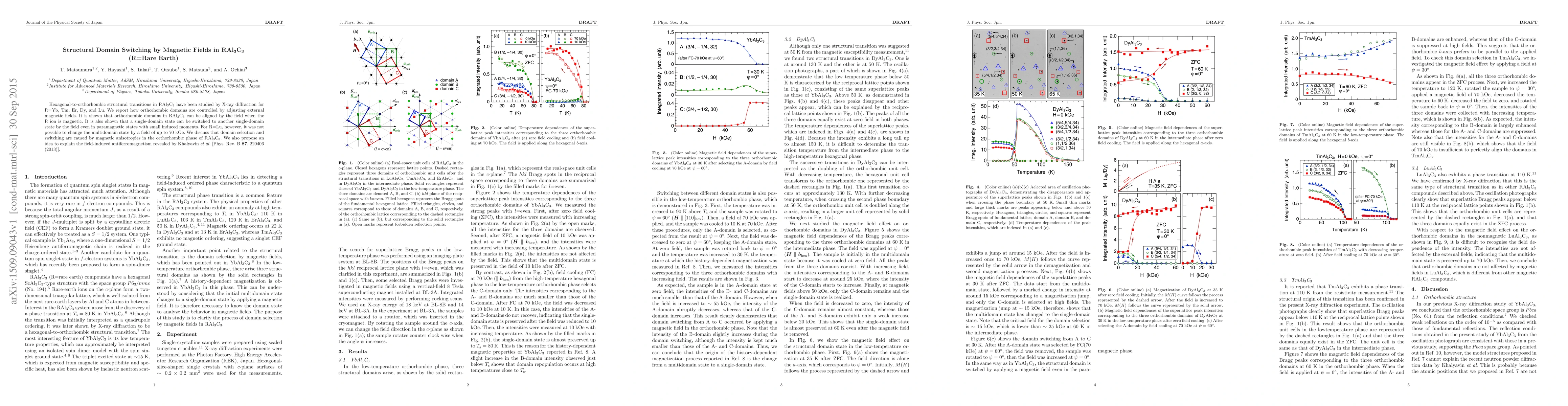 Hexagonal-to-orthorhombic structural transitions in RAl$_3$C$_3$ have been studied by X-ray diffraction for R=Yb, Tm, Er, Dy, and Lu. We report how orthorhombic domains are controlled by adjusting external magnetic fields. It is shown that orthorhombic domains in RAl$_3$C$_3$ can be aligned by the field when the R ion is magnetic. It is also shown that a single-domain state can be switched to another single-domain state by the field even in paramagnetic states with small induced moments. For R=Lu, however, it was not possible to change the multidomain state by a field of up to 70 kOe. We discuss that domain selection and switching are caused by magnetic anisotropies in the orthorhombic phase of RAl$_3$C$_3$. We also propose an idea to explain the field-induced antiferromagnetism revealed by Khalyavin et al. [Phys. Rev. B \textbf{87}, 220406 (2013)].