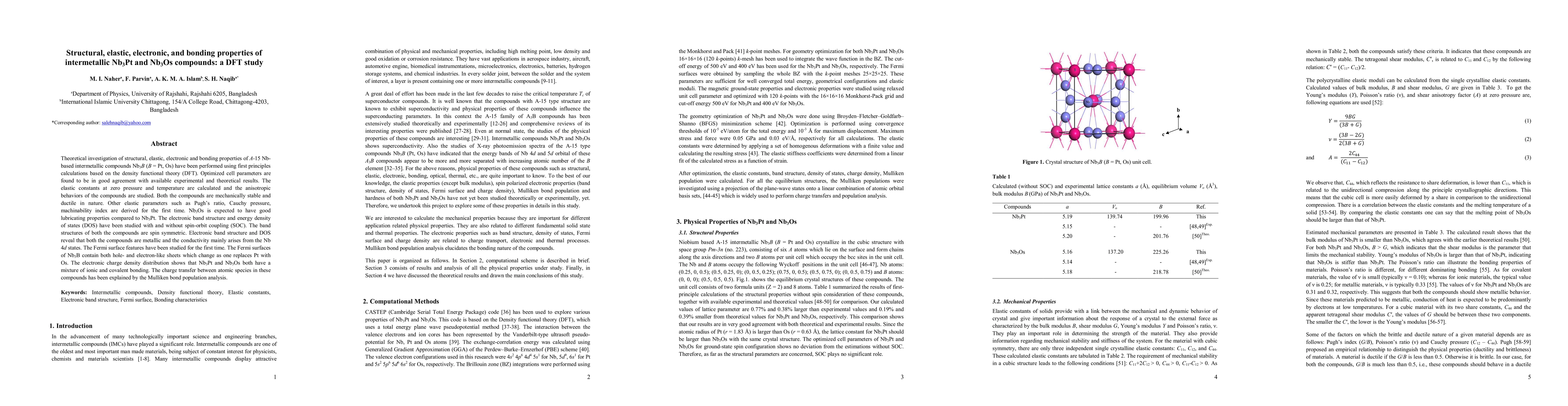 This DFT study investigates the structural, elastic, electronic, and bonding properties of Nb3Pt and Nb3Os intermetallic compounds. Both compounds are found to be mechanically stable and ductile, with Nb3Os showing potential lubricating properties. The electronic band structure indicates metallic behavior dominated by Nb 4d states, and the compounds exhibit a mix of ionic and covalent bonding.