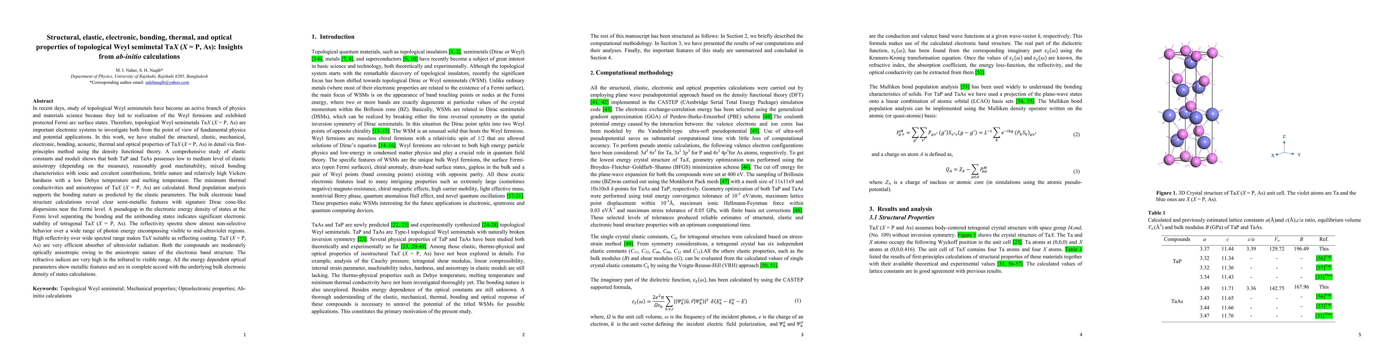 This study investigates the comprehensive properties of TaP and TaAs using density functional theory, revealing their structural, elastic, electronic, and optical characteristics. Both materials exhibit semi-metallic features with Dirac cone-like dispersions, high reflectivity, and significant optical anisotropy.