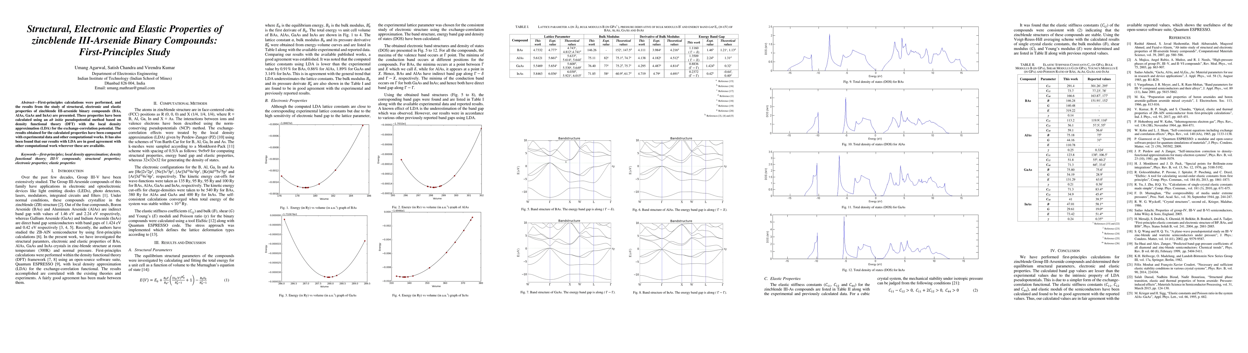 This paper presents first-principles calculations of structural, electronic, and elastic properties of zincblende III-arsenide binary compounds (BAs, AlAs, GaAs, and InAs) using DFT with LDA. The results show good agreement with experimental data and other computational methods.