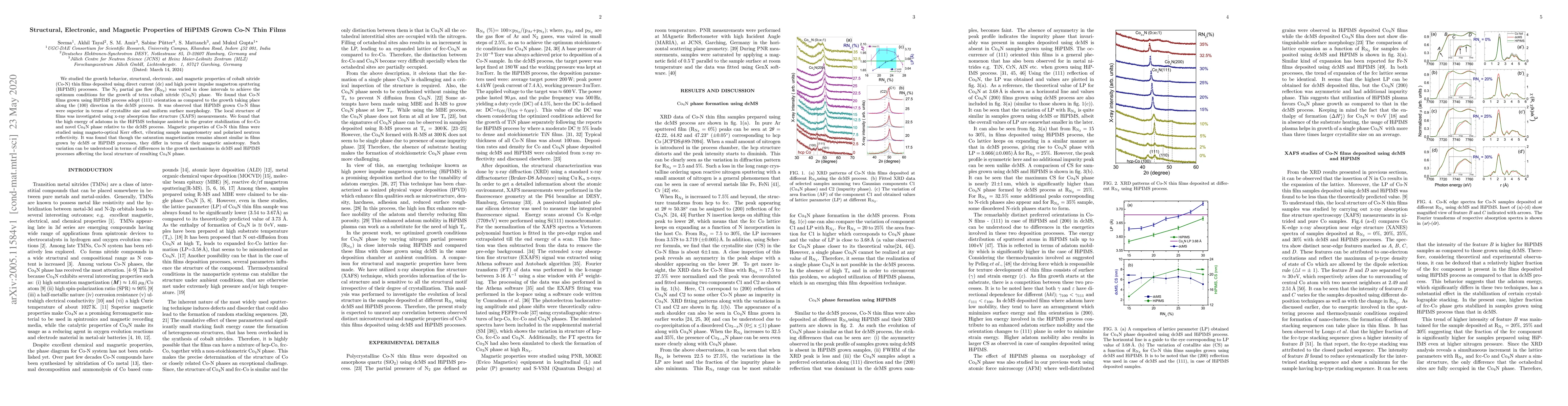 This study investigates the structural, electronic, and magnetic properties of cobalt nitride (Co-N) thin films deposited using dc and HiPIMS processes. HiPIMS grown Co-N films exhibit (111) orientation, superior crystallite size, and uniform morphology compared to dcMS films. The HiPIMS technique stabilizes fcc-Co and tetra cobalt nitride phase, leading to differences in magnetic anisotropy despite similar saturation magnetization.
