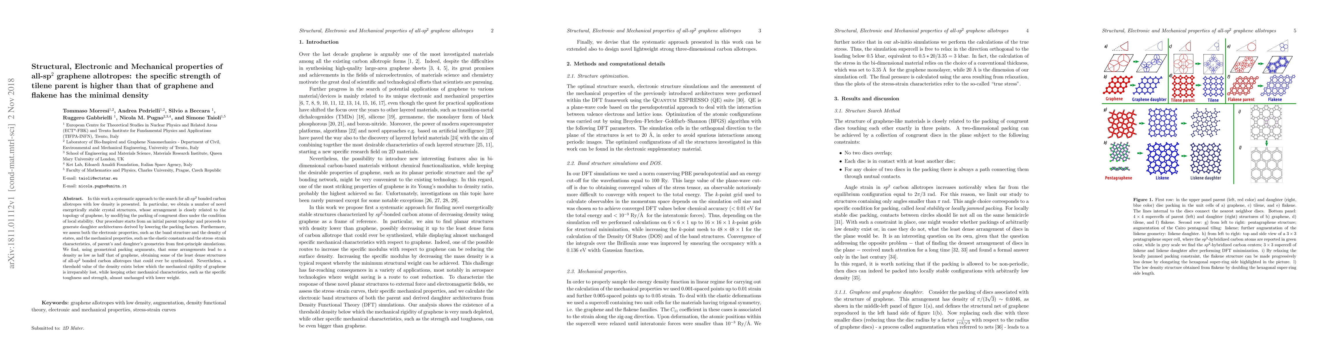 This paper explores novel all-$sp^2$ bonded carbon allotropes, discovering structures with lower density than graphene, including tilene, which exhibits higher specific strength, and flakene, which has minimal density. The study uses first-principle simulations to evaluate the electronic and mechanical properties of these new carbon allotropes.