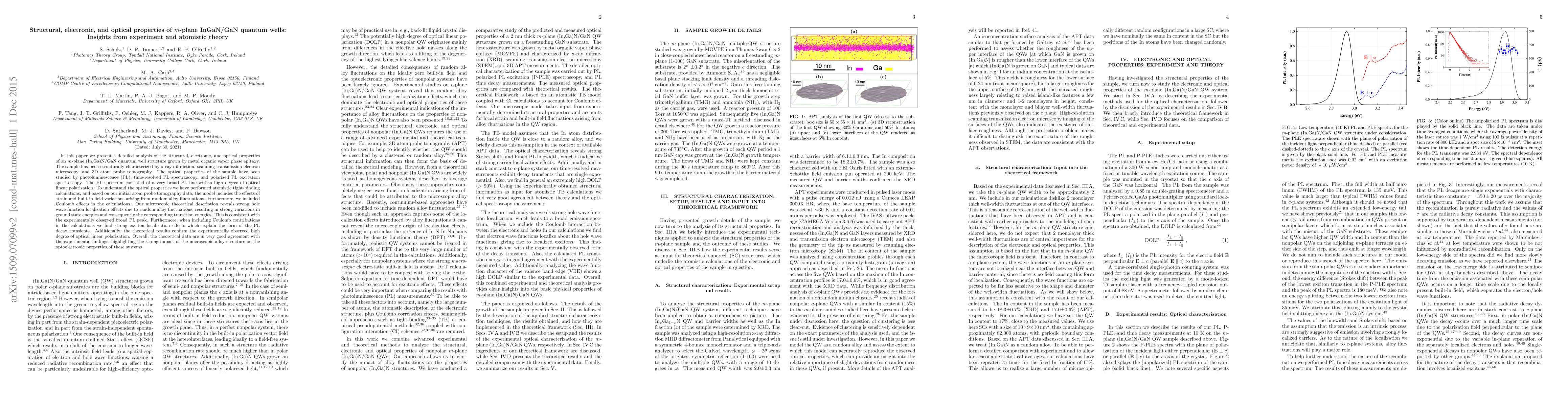 This paper investigates the structural, electronic, and optical properties of $m$-plane InGaN/GaN quantum wells using experimental techniques and atomistic theory. The study reveals strong exciton localization and polarization effects due to random alloy fluctuations, consistent with broad photoluminescence peaks and high polarization observed experimentally.