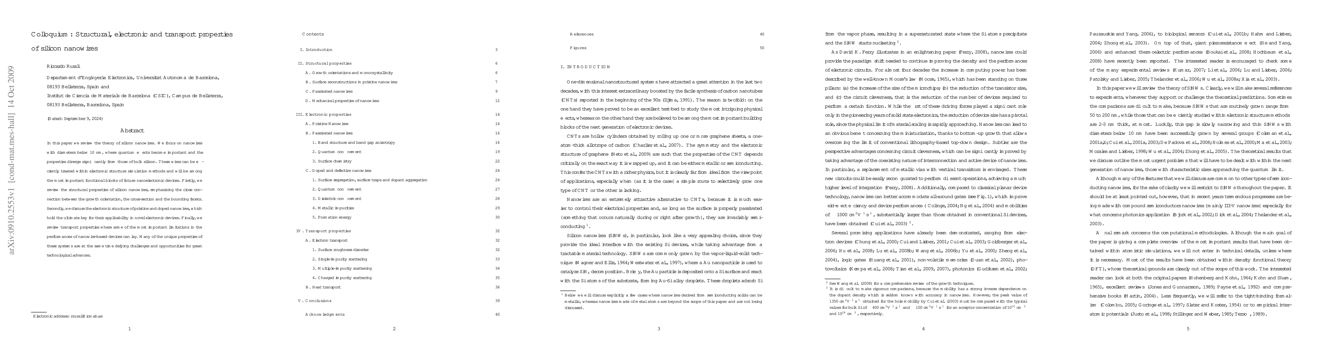 This paper reviews the structural, electronic, and transport properties of silicon nanowires with diameters under 10 nm, emphasizing quantum effects and their potential for future nanoelectronic devices, while highlighting challenges and opportunities for technological advancements.