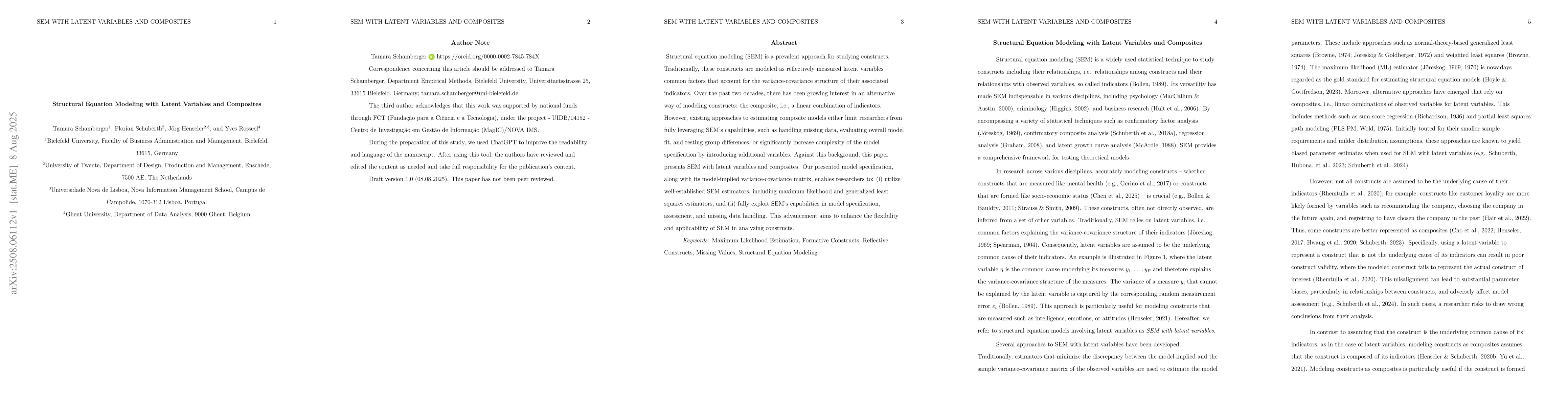 Structural equation modeling (SEM) is a prevalent approach for studying constructs. Traditionally, these constructs are modeled as reflectively measured latent variables - common factors that account for the variance-covariance structure of their associated indicators. Over the past two decades, there has been growing interest in an alternative way of modeling constructs: the composite, i.e., a linear combination of indicators. However, existing approaches to estimating composite models either limit researchers from fully leveraging SEM's capabilities, such as handling missing data, evaluating overall model fit, and testing group differences, or significantly increase complexity of the model specification by introducing additional variables. Against this background, this paper presents SEM with latent variables and composites. Our presented model specification, along with its model-implied variance-covariance matrix, enables researchers to: (i) utilize well-established SEM estimators, including maximum likelihood and generalized least squares estimators, and (ii) fully exploit SEM's capabilities in model specification, assessment, and missing data handling. This advancement aims to enhance the flexibility and applicability of SEM in analyzing constructs.