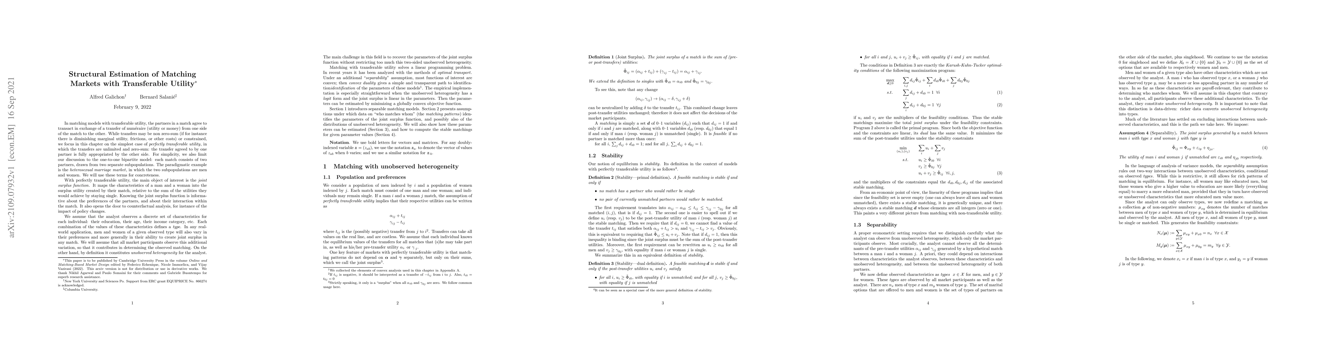 This paper provides an introduction to structural estimation methods for matching markets with transferable utility.