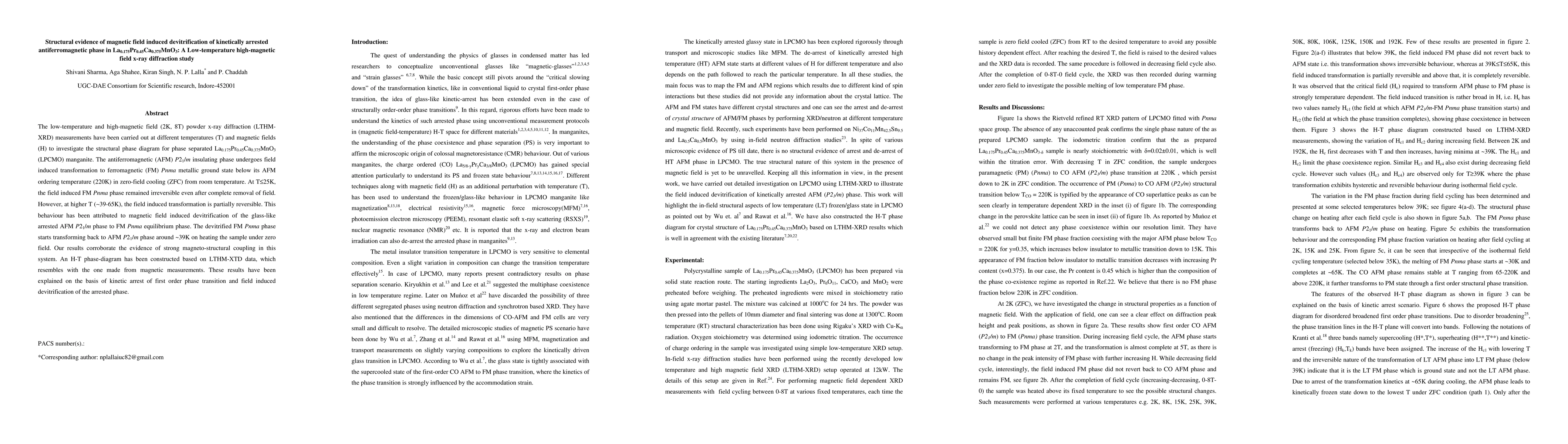 This study investigates the structural phase transition in La0.175Pr0.45Ca0.375MnO3 under low temperature and high magnetic field using x-ray diffraction. It reveals that the magnetic field induces a transformation from an antiferromagnetic to a ferromagnetic phase, with the latter being kinetically arrested and partially reversible.