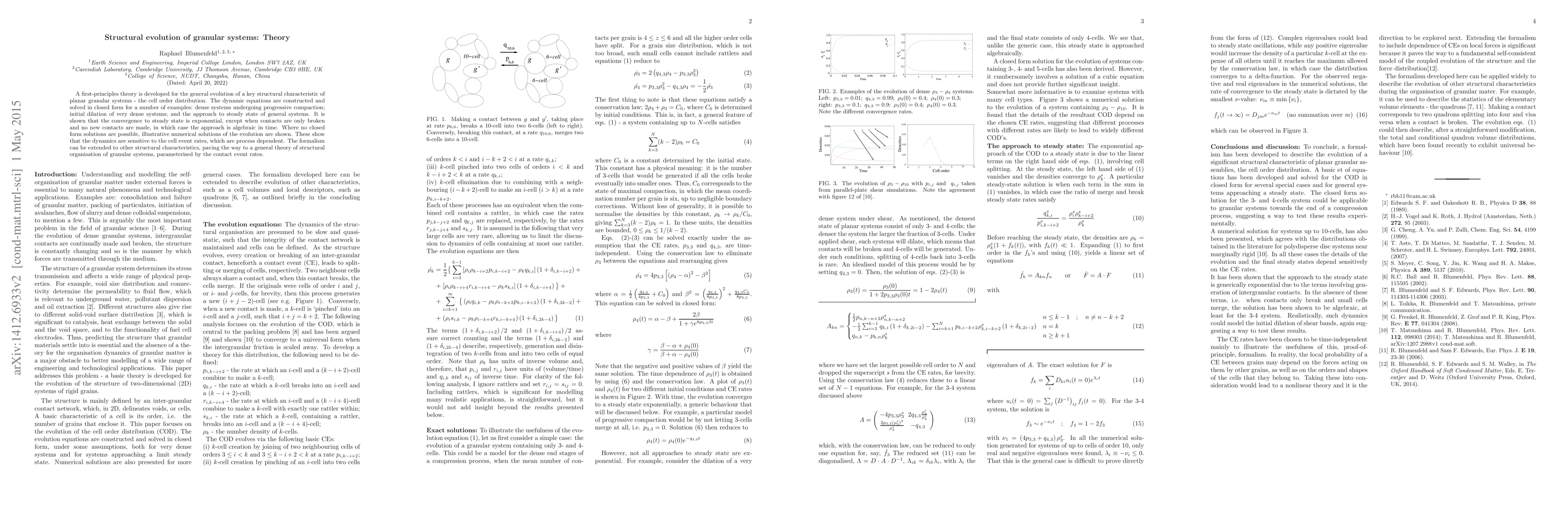 This paper develops a first-principles theory for the structural evolution of planar granular systems, focusing on the cell order distribution. It provides closed-form solutions for various dynamic scenarios and shows that steady state convergence is typically exponential, except under specific conditions where it is algebraic.