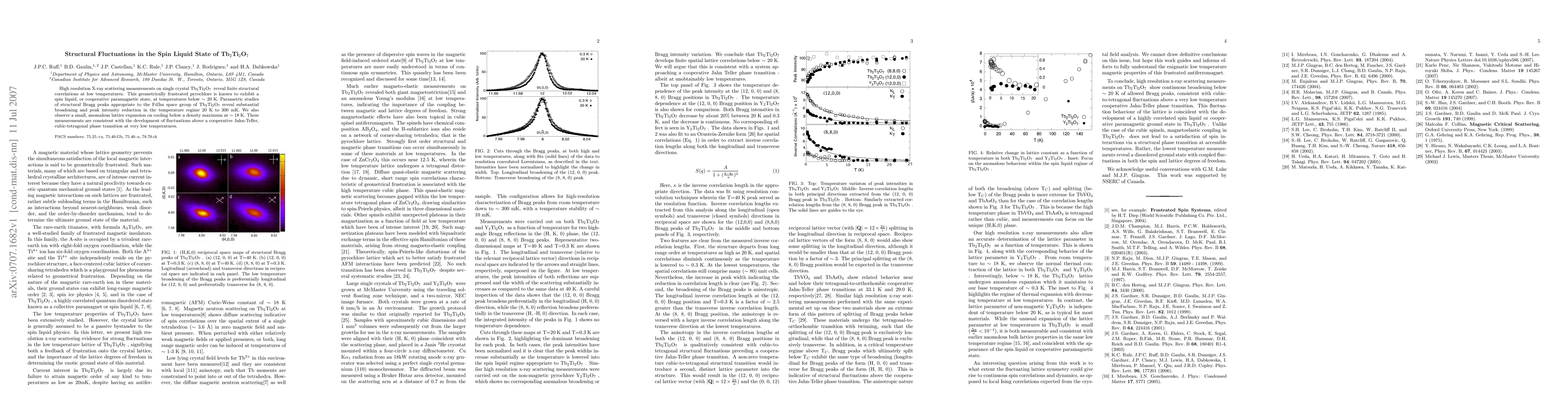 High-resolution X-ray scattering on Tb2Ti2O7 reveals structural fluctuations at low temperatures, indicating a cooperative Jahn-Teller transition in the spin liquid state, evidenced by peak broadening and anomalous lattice expansion below ~18 K.